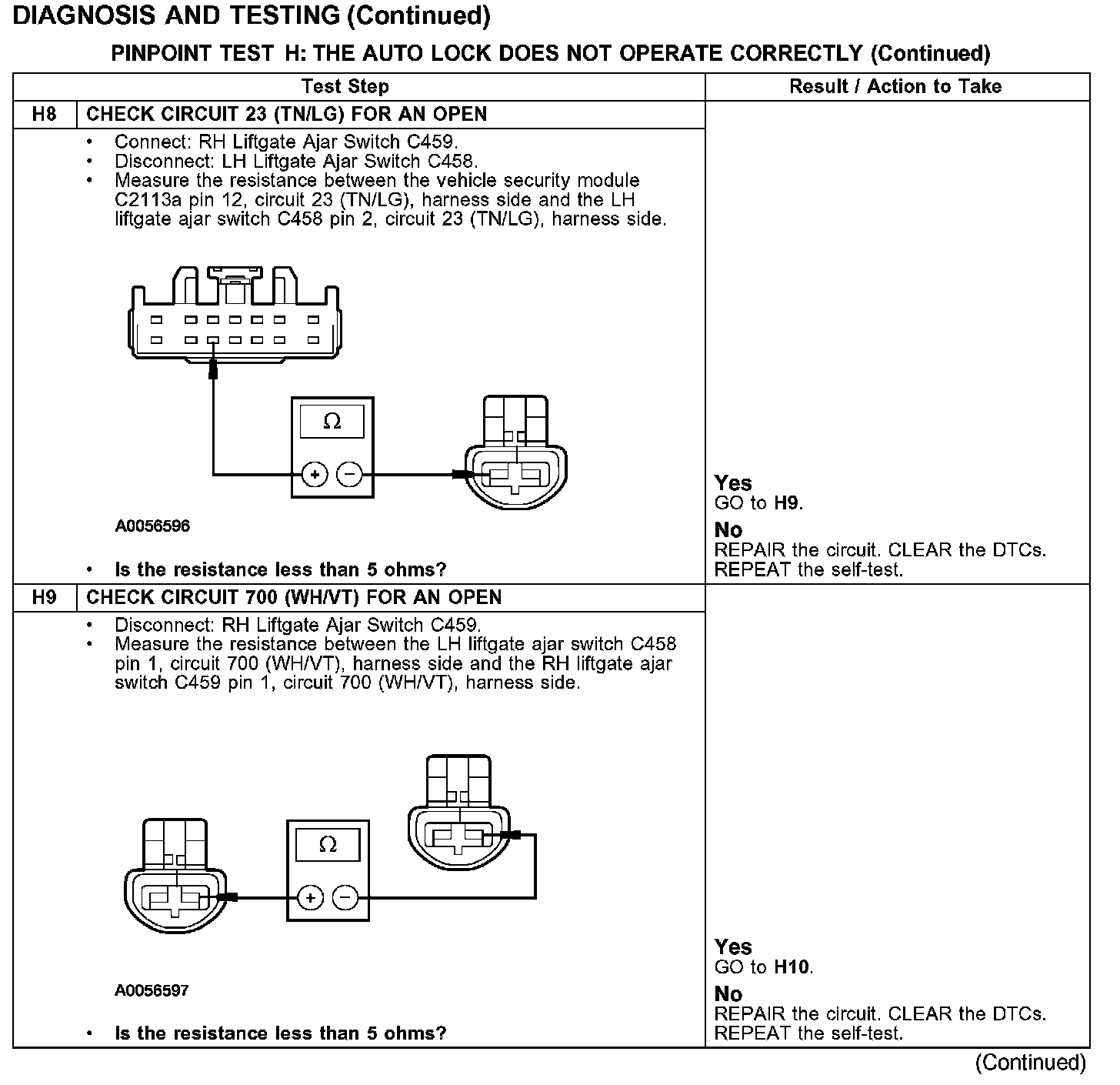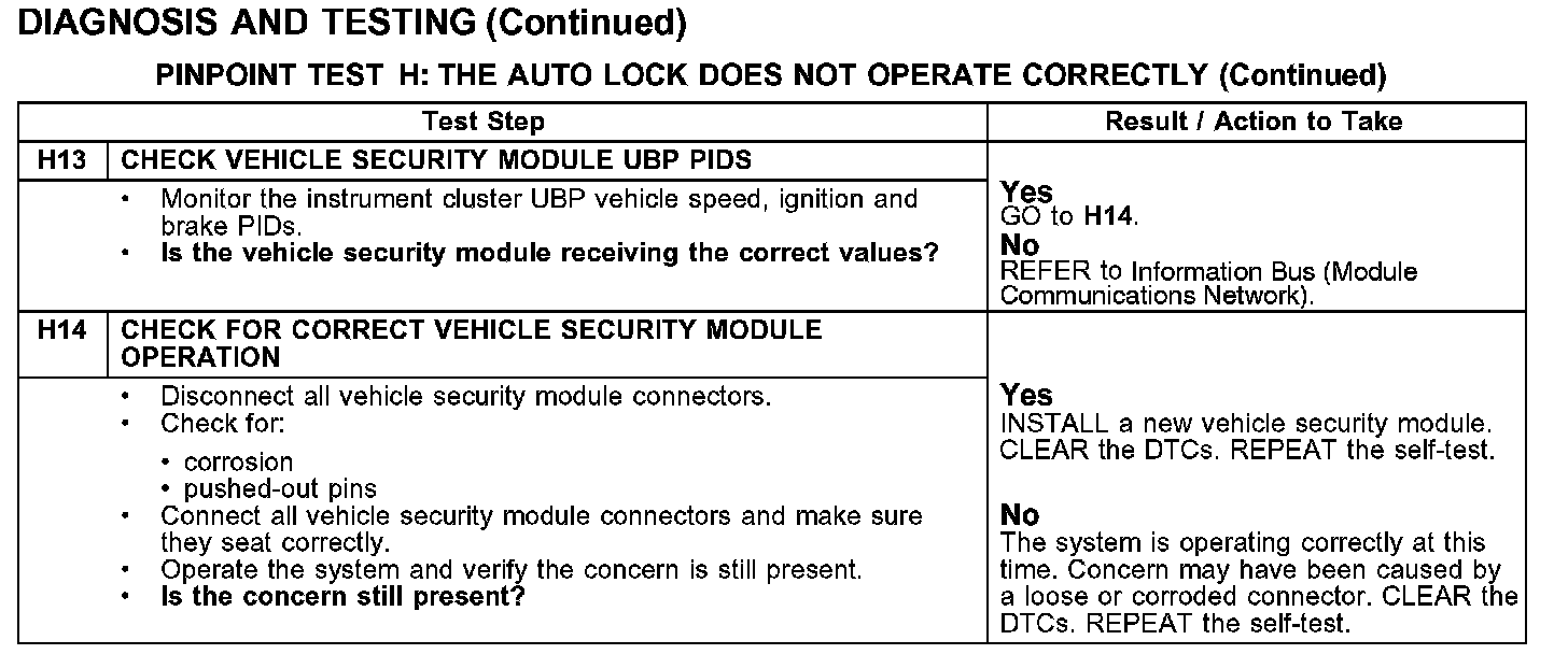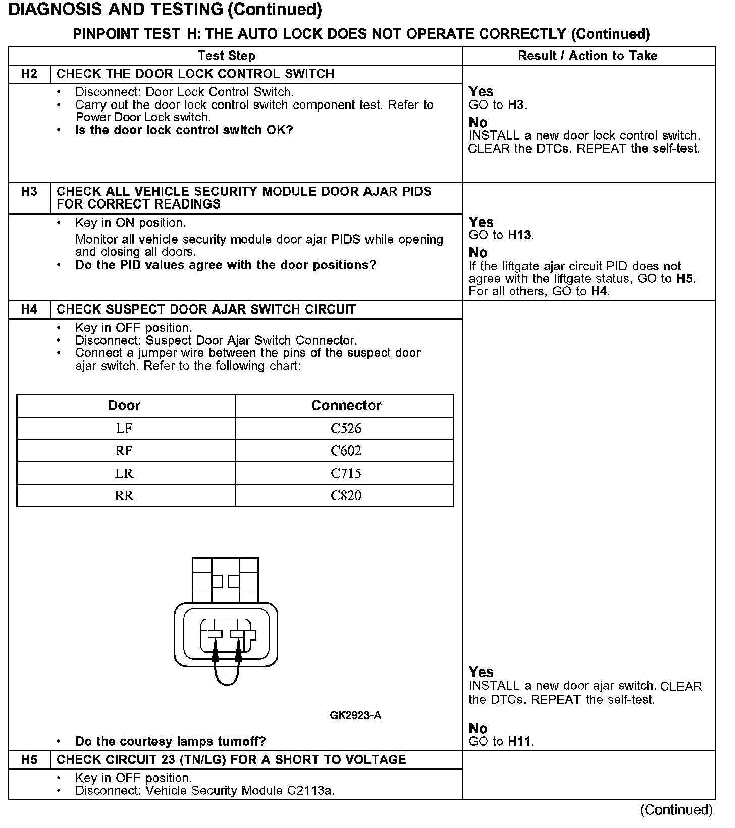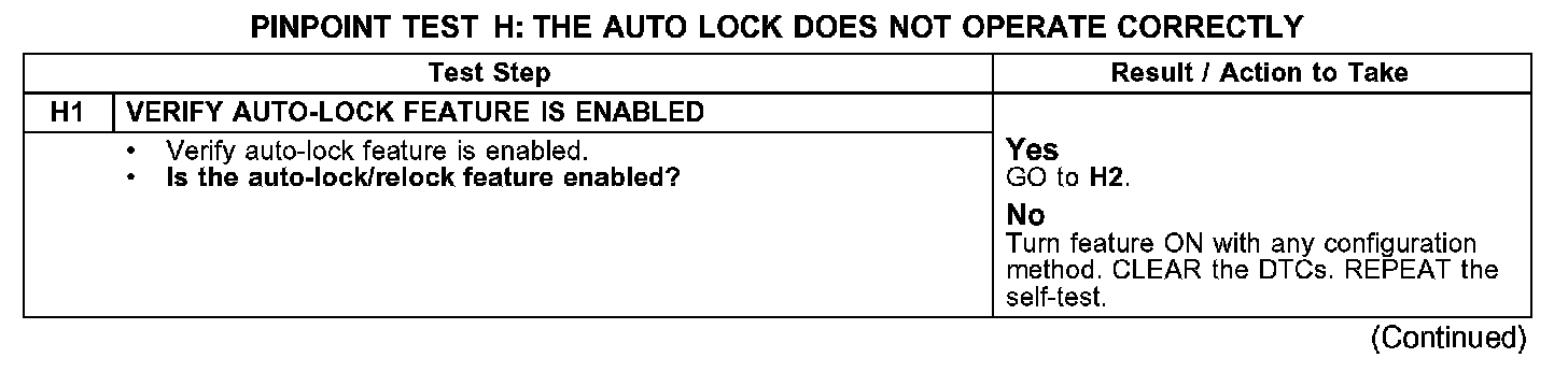 PINPOINT TEST H: THE AUTO LOCK DOES NOT OPERATE CORRECTLY