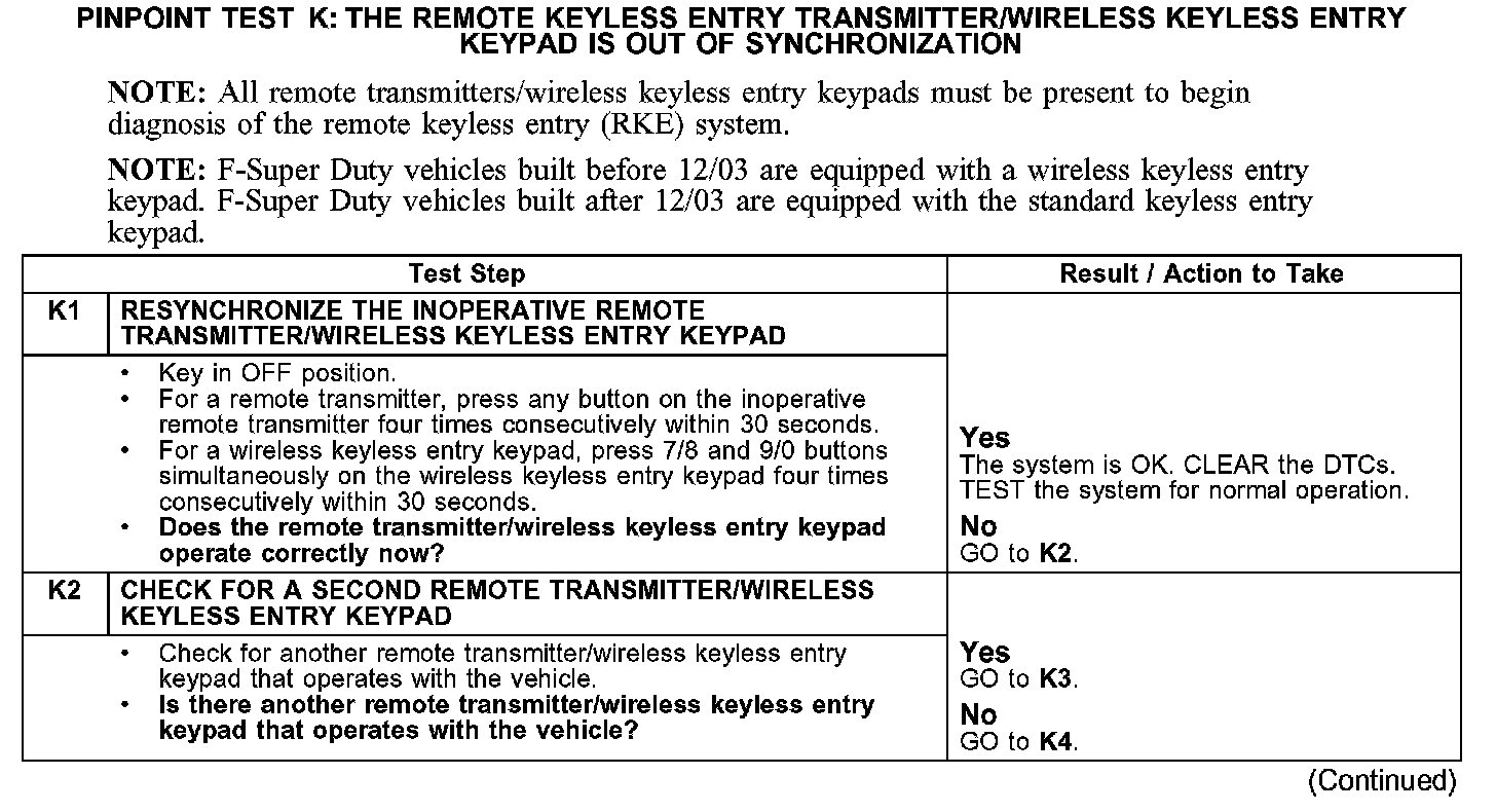PINPOINT TEST K: THE REMOTE KEYLESS ENTRY TRANSMITTER/WIRELESS
