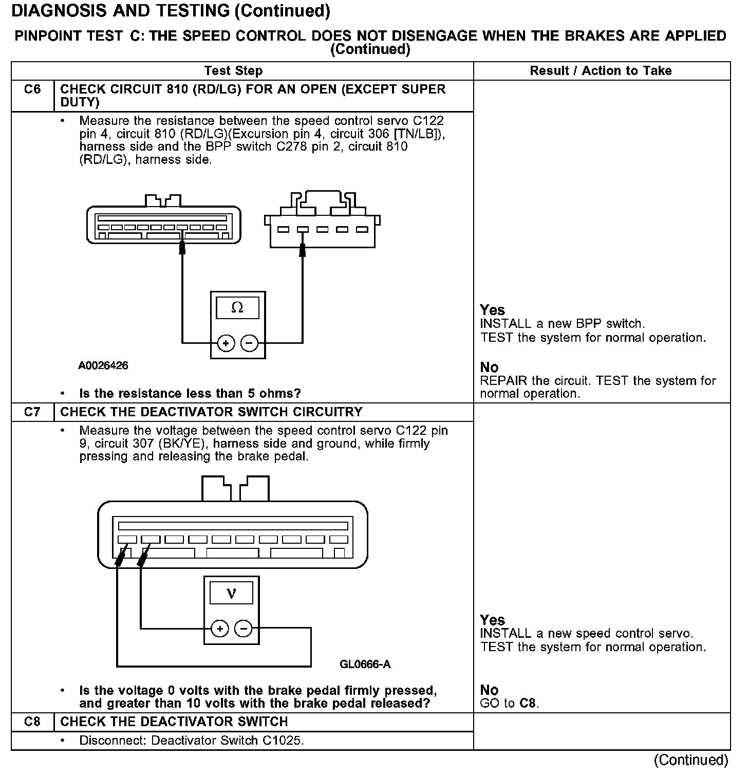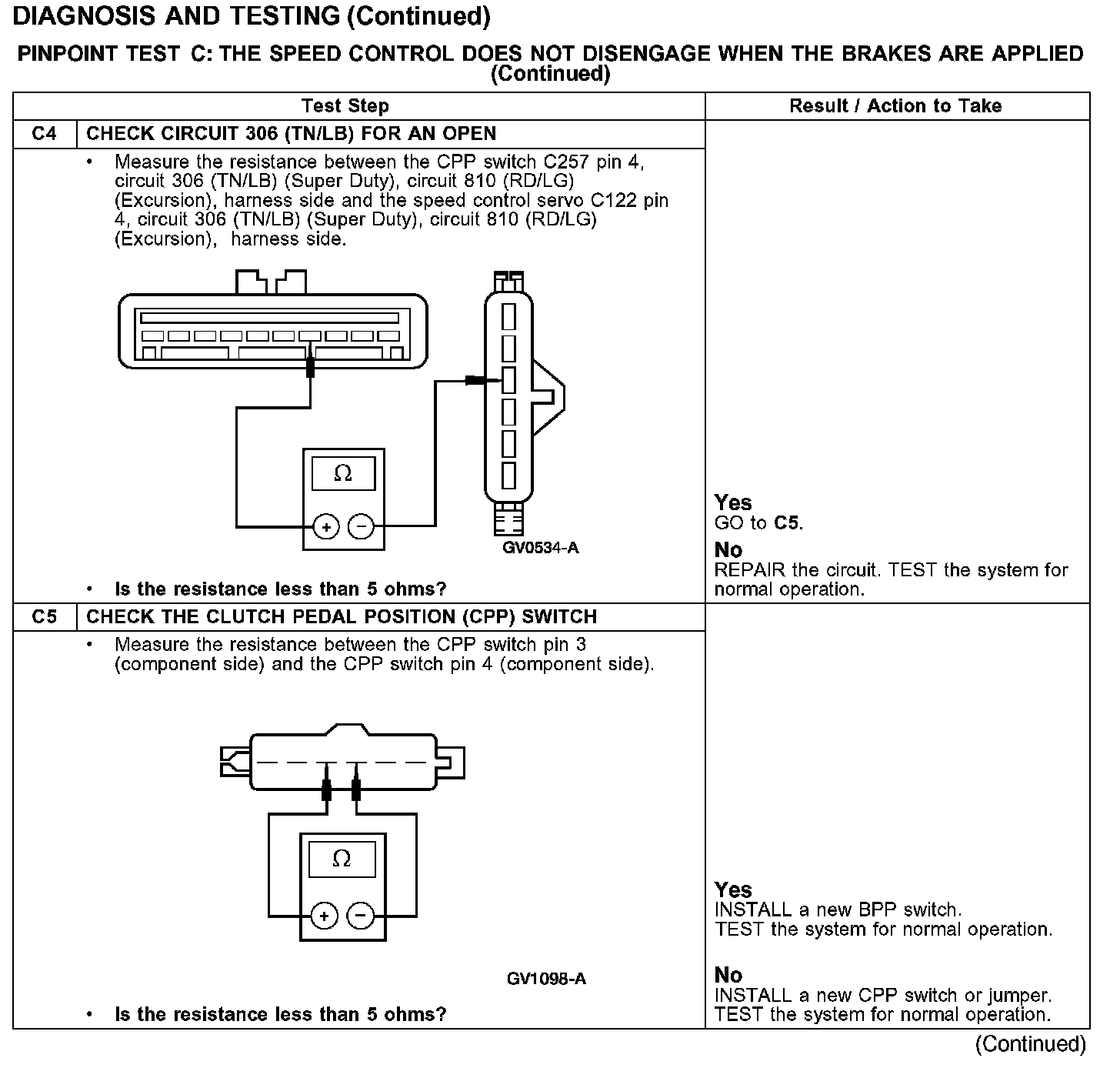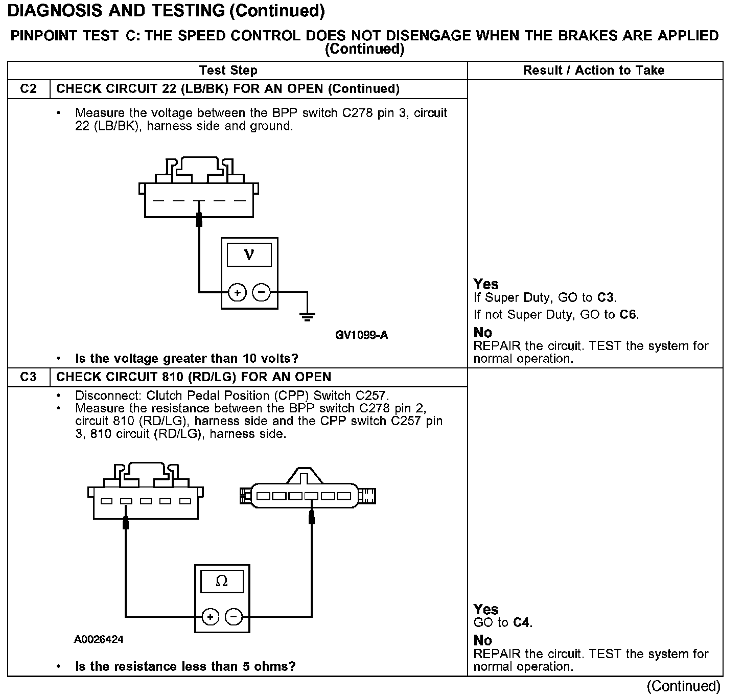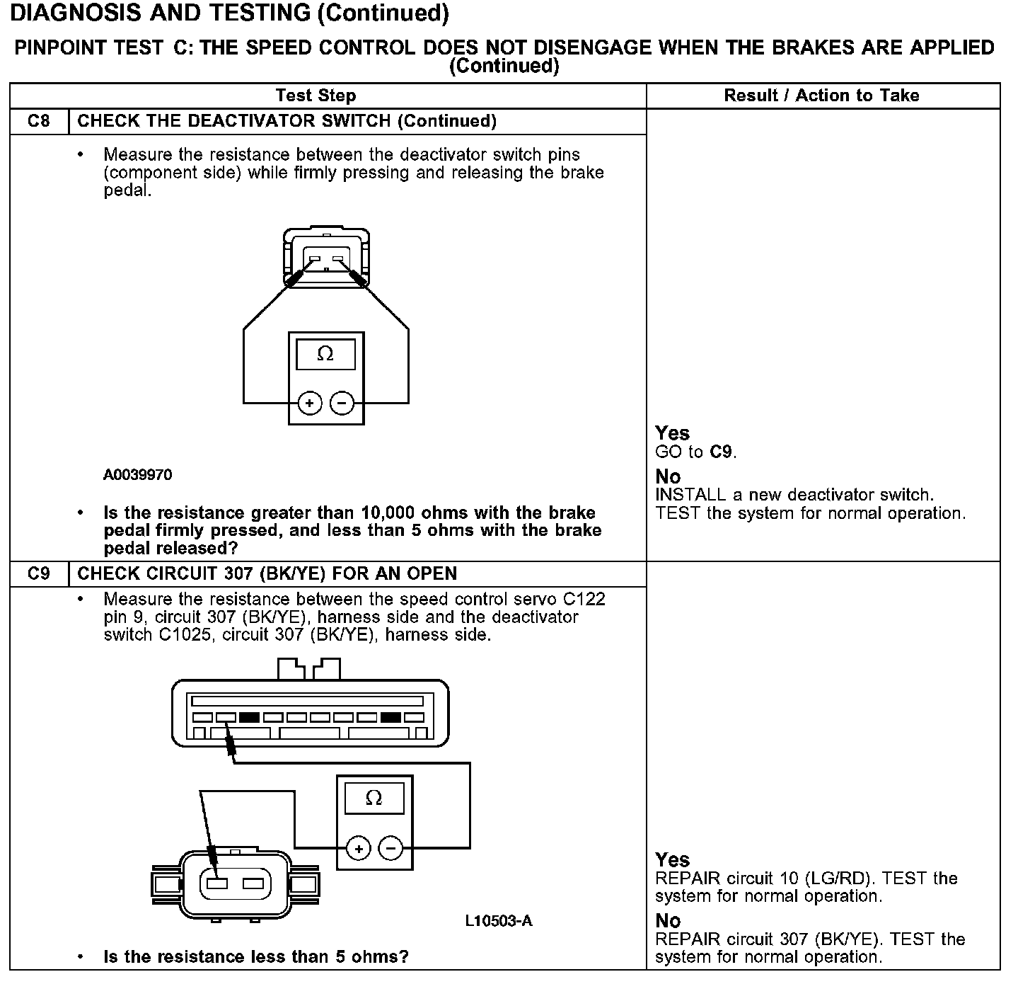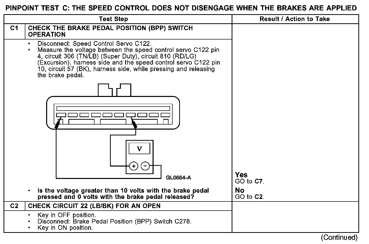 PINPOINT TEST C: THE SPEED CONTROL DOES NOT DISENGAGE WHEN THE BRAKES ARE APPLIED