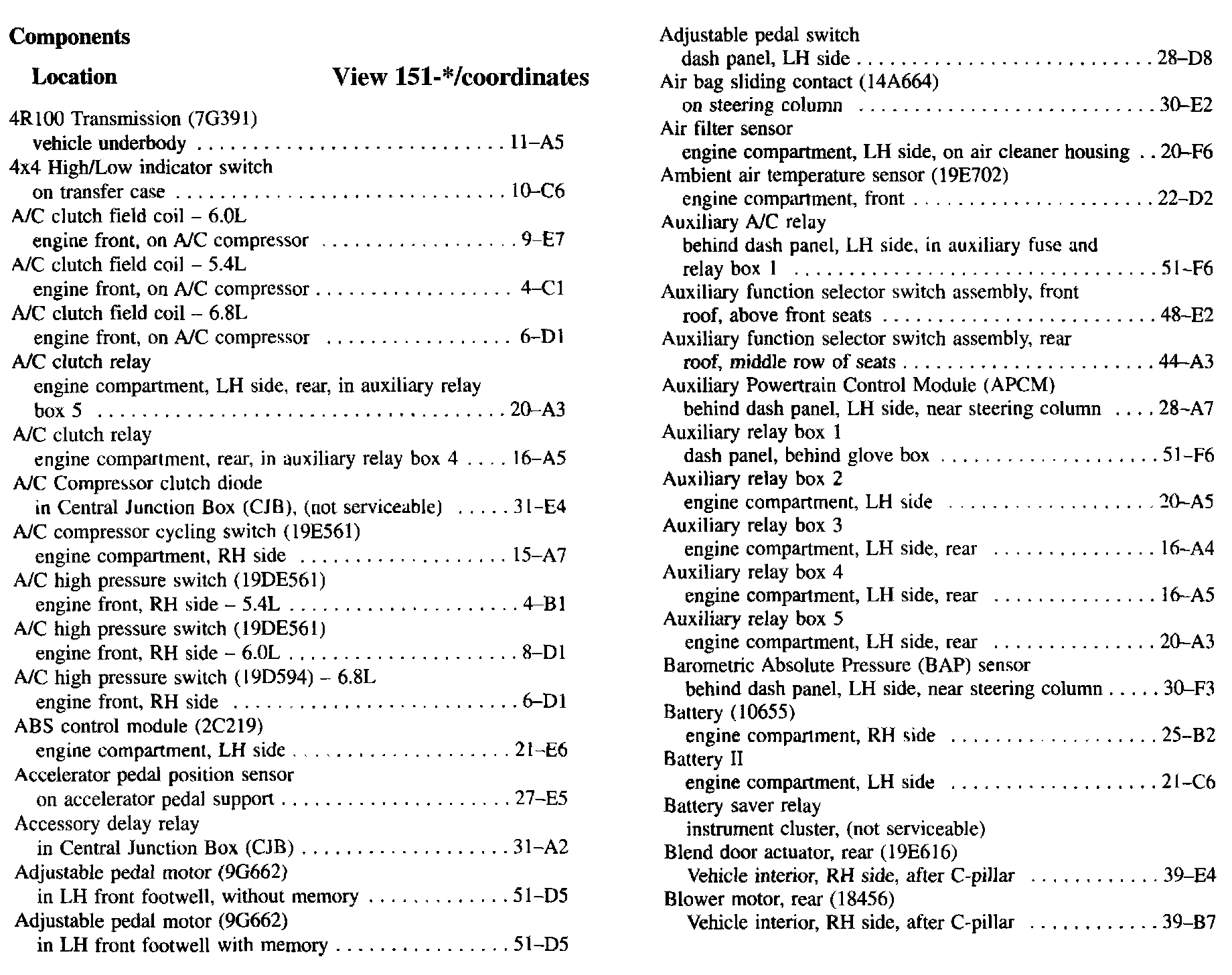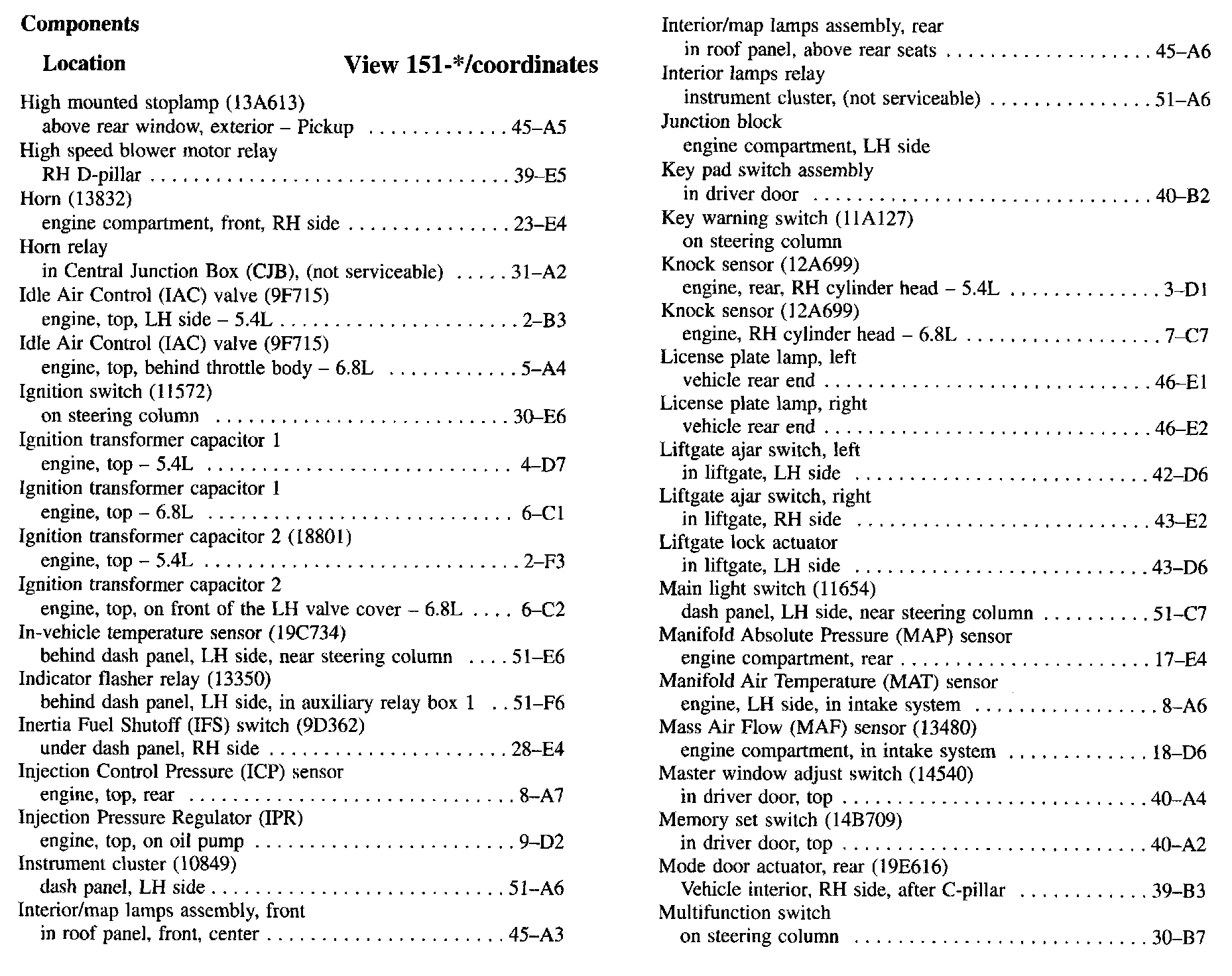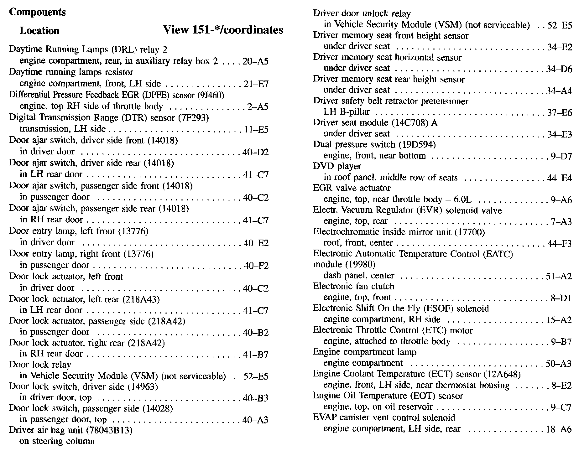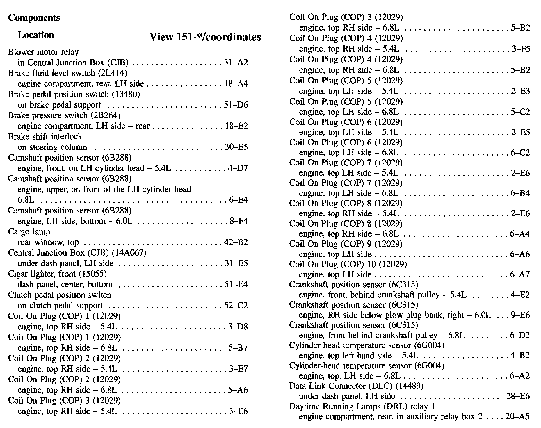 PLEASE NOTE: If a link on the Component Location Index to a view is not provided, that means that the Component and/or View in question does NOT apply to the vehicle model selected.