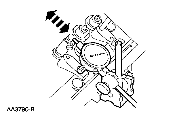 NOTE: Valve stem diameter must be within specifications before checking valve stem to valve guide clearance.