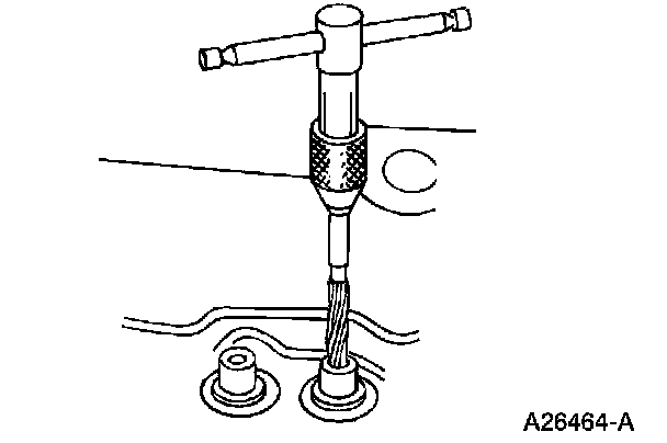 2. If the valve guide is not within specifications, ream the valve guide and install a valve with an oversize stem or remove the valve guide and install a new valve guide.