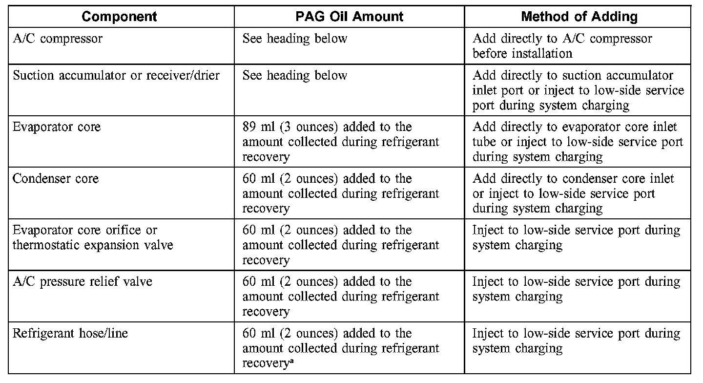 Refrigerant Oil Adding for New Suction Accumulator or Receiver/Drier Installation