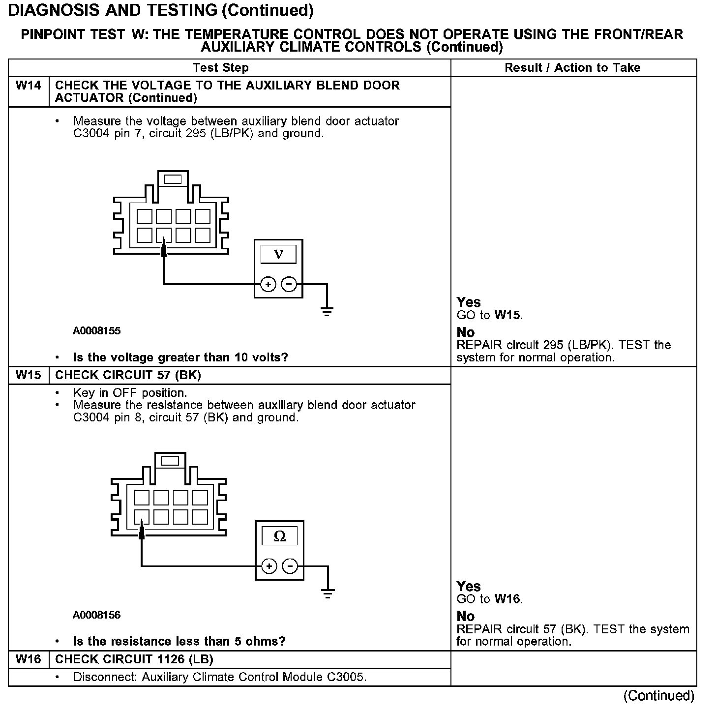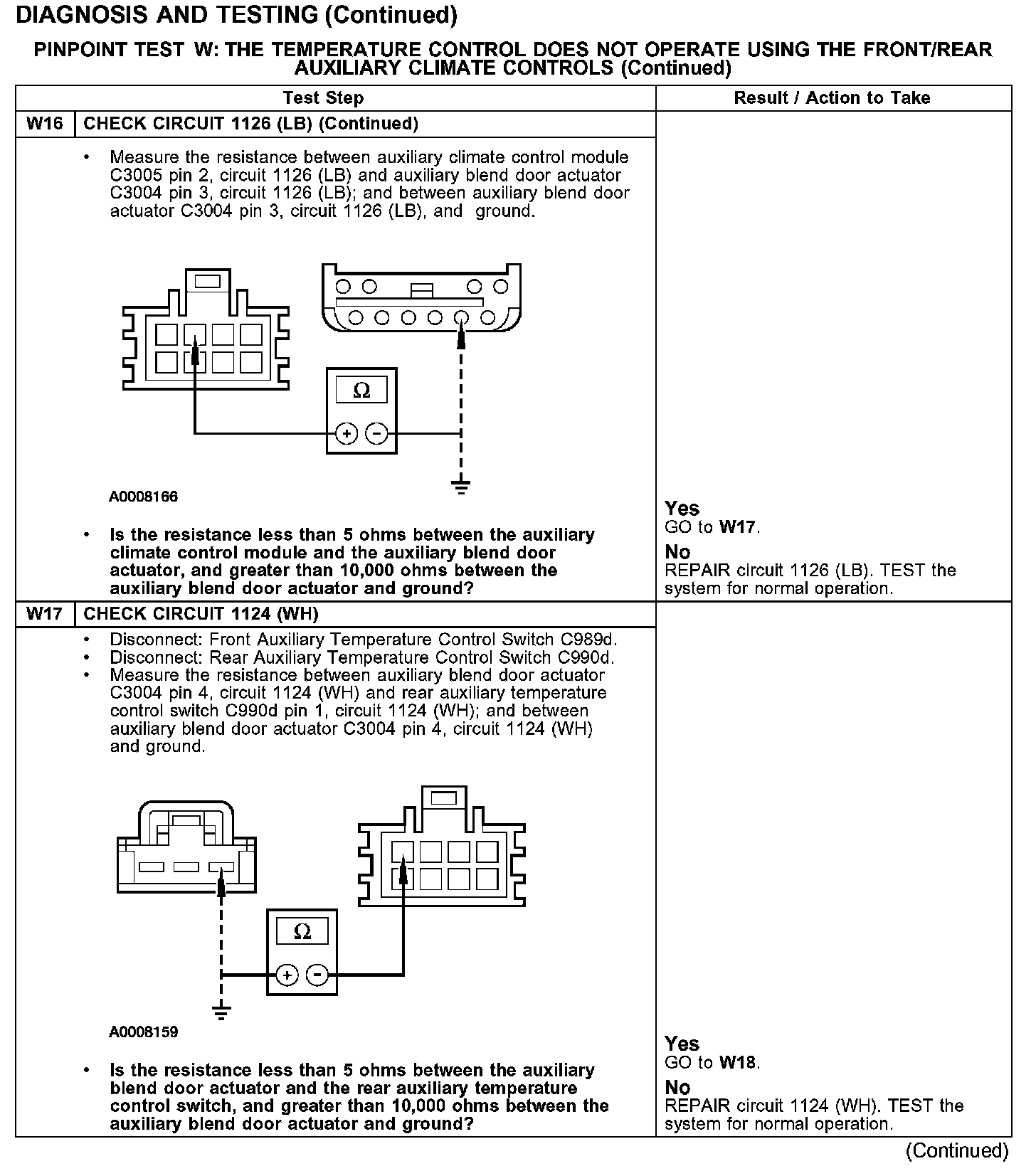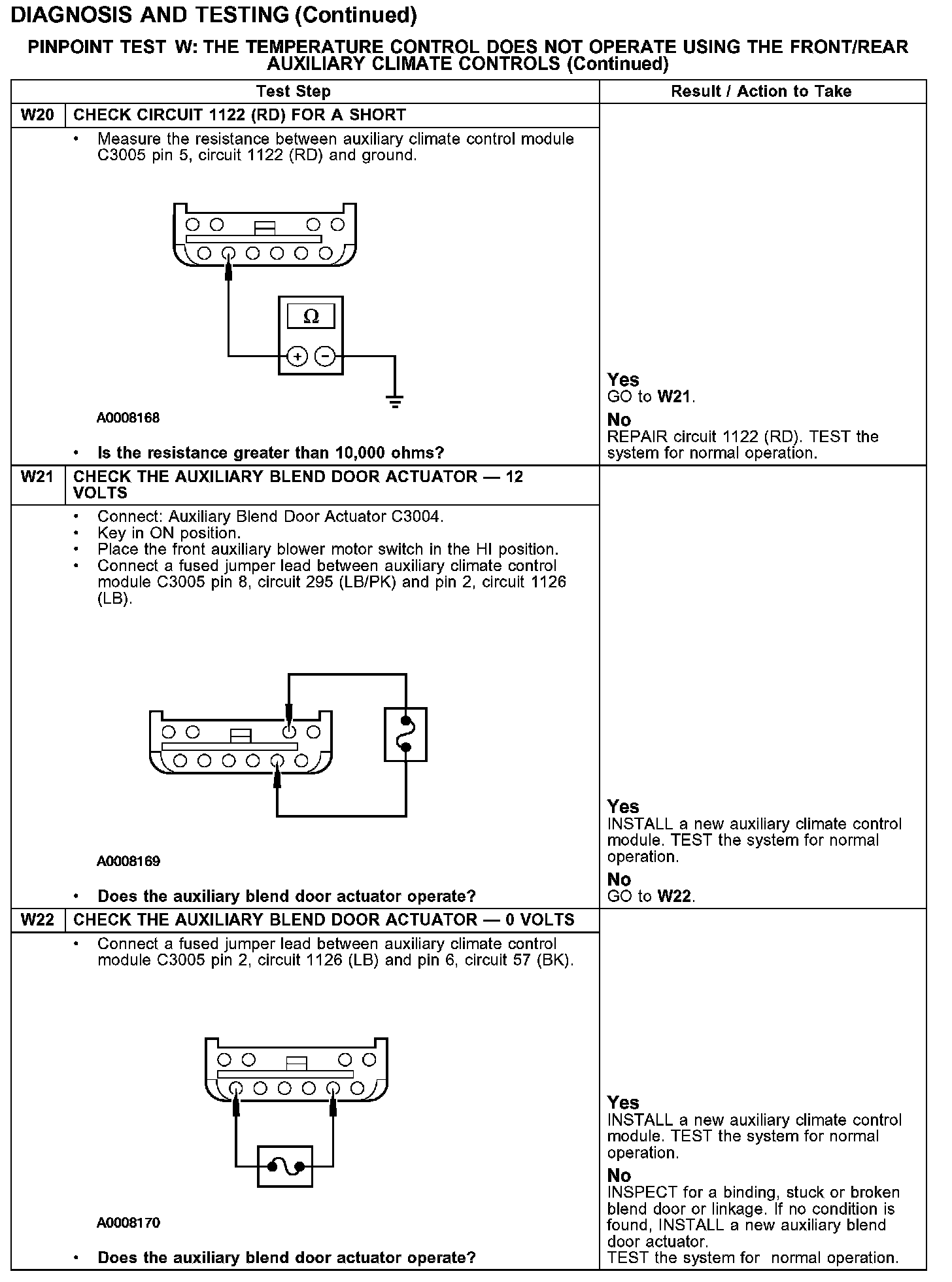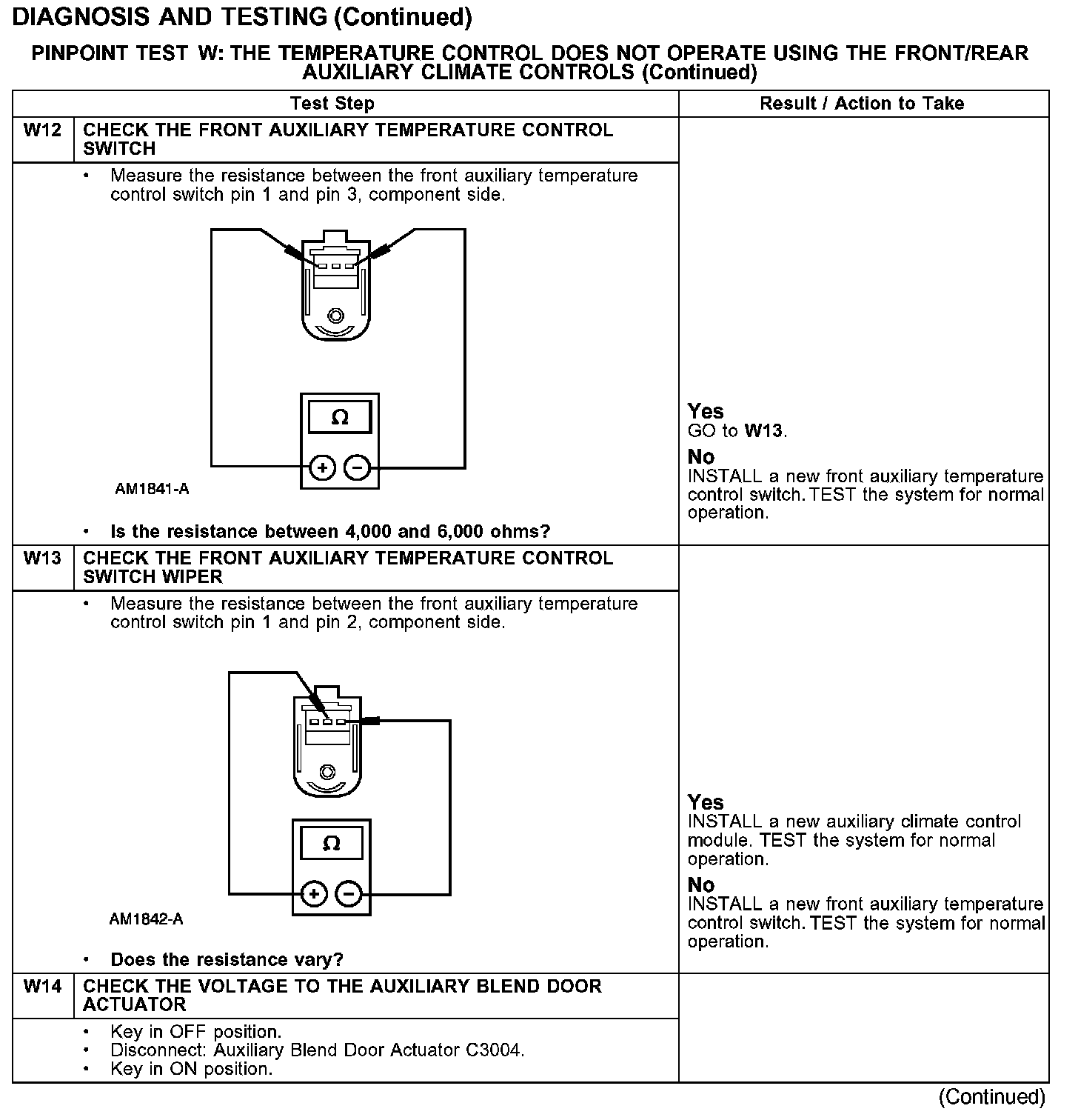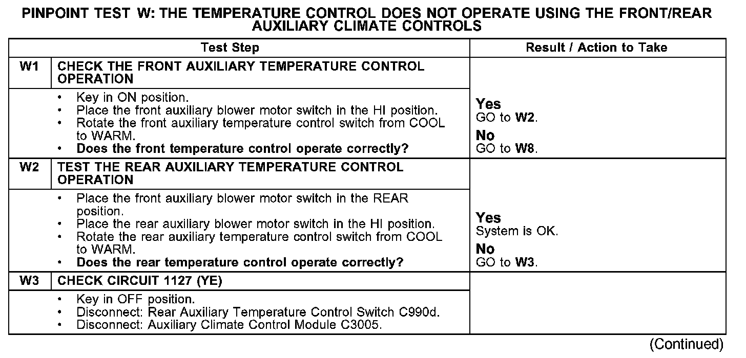 PINPOINT TEST W: THE TEMPERATURE CONTROL DOES NOT OPERATE USING THE FRONT/REAR AUXILIARY CLIMATE CONTROLS