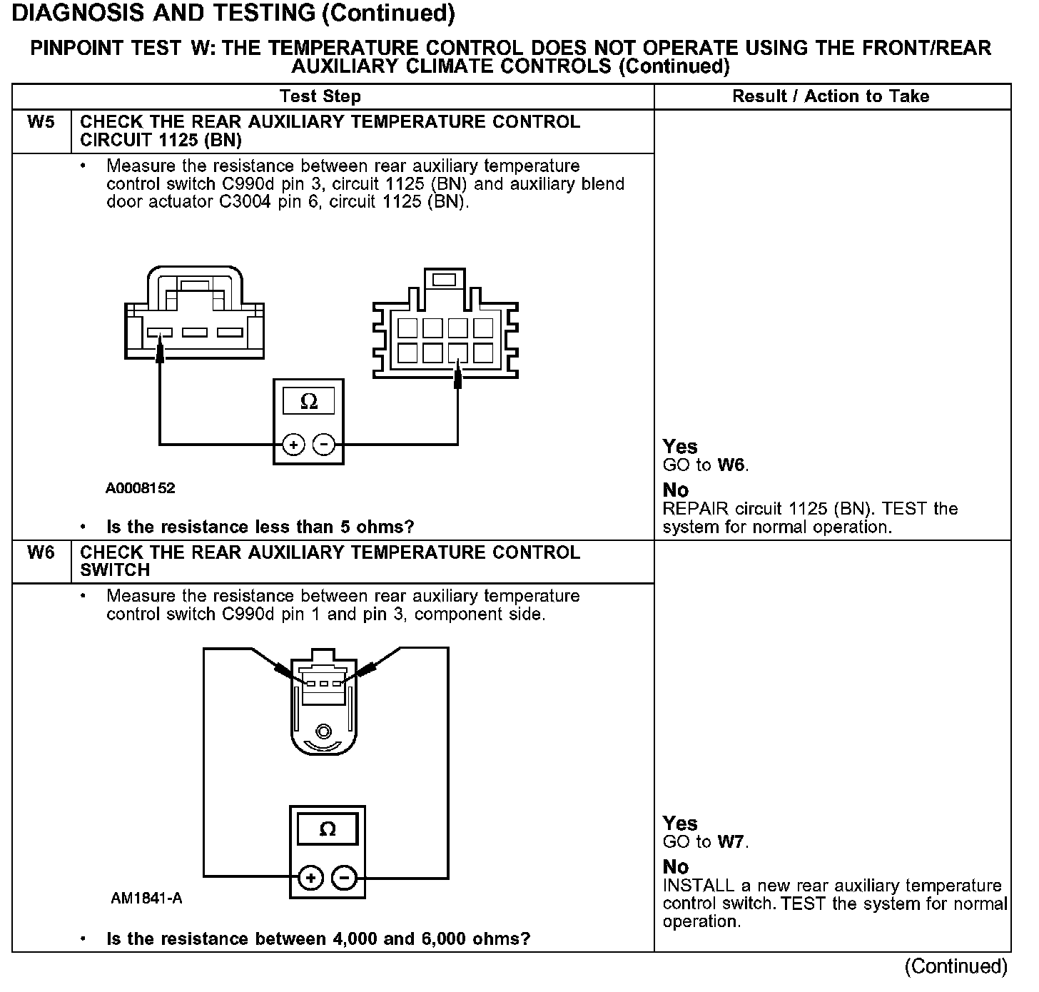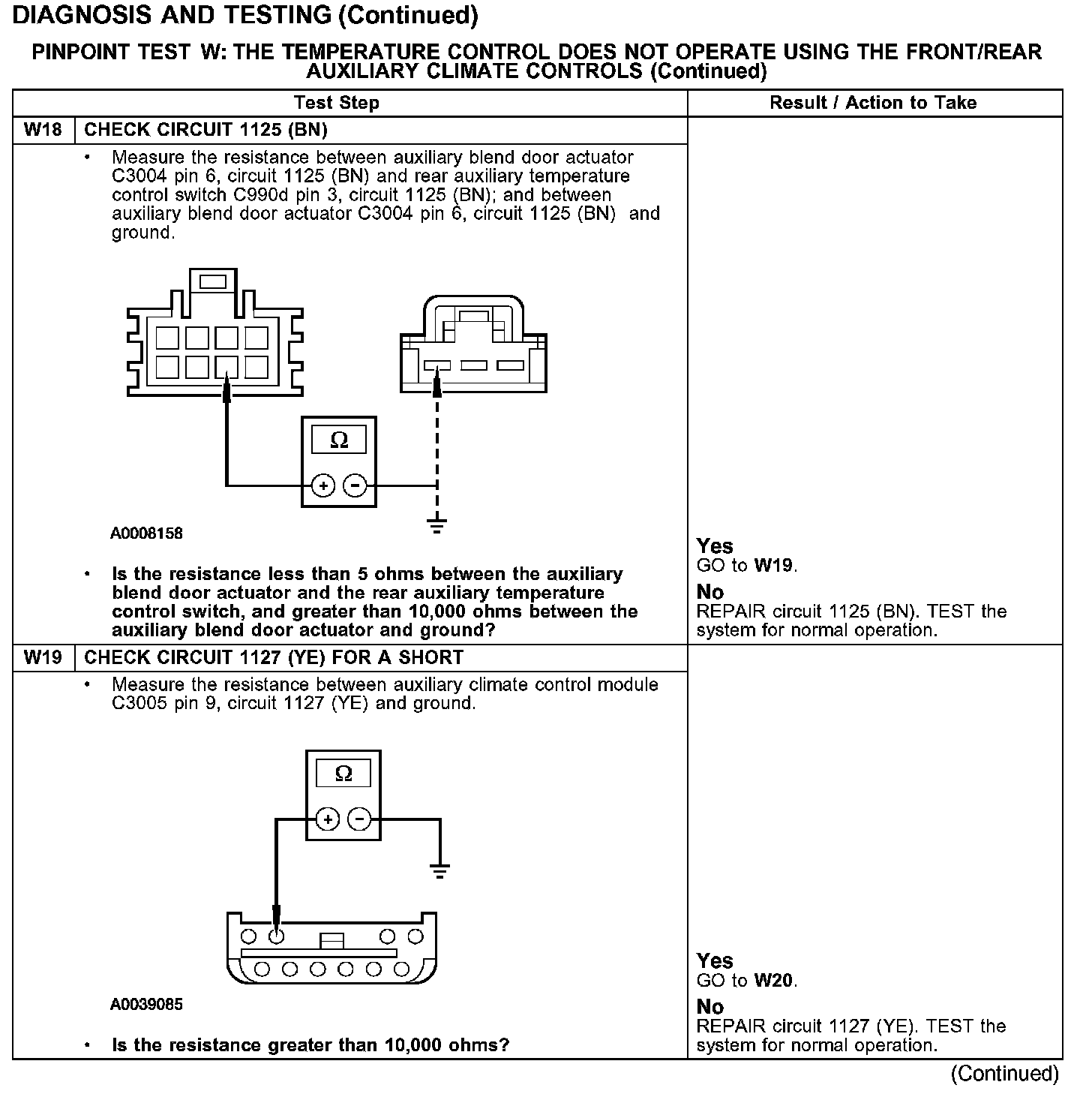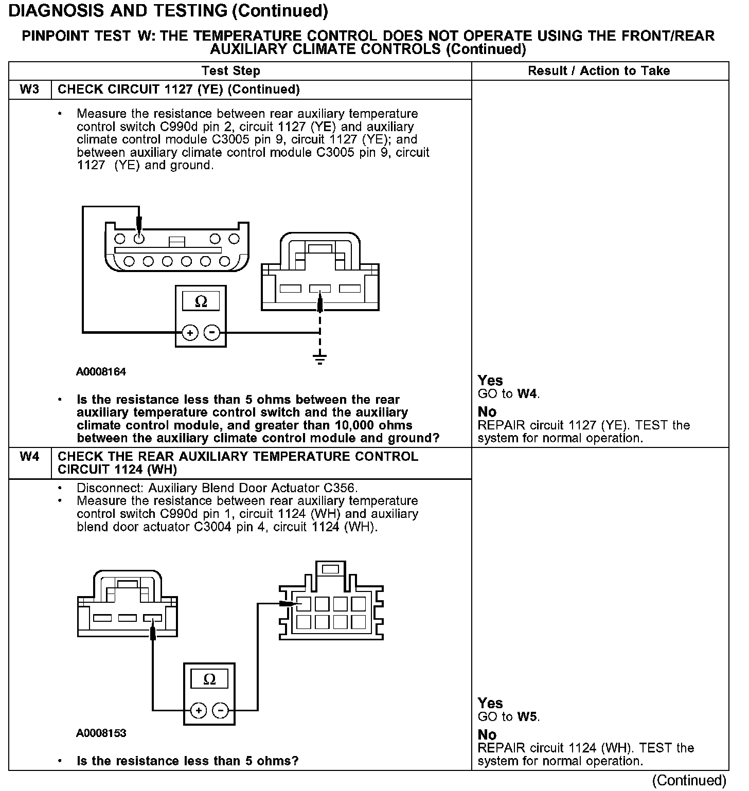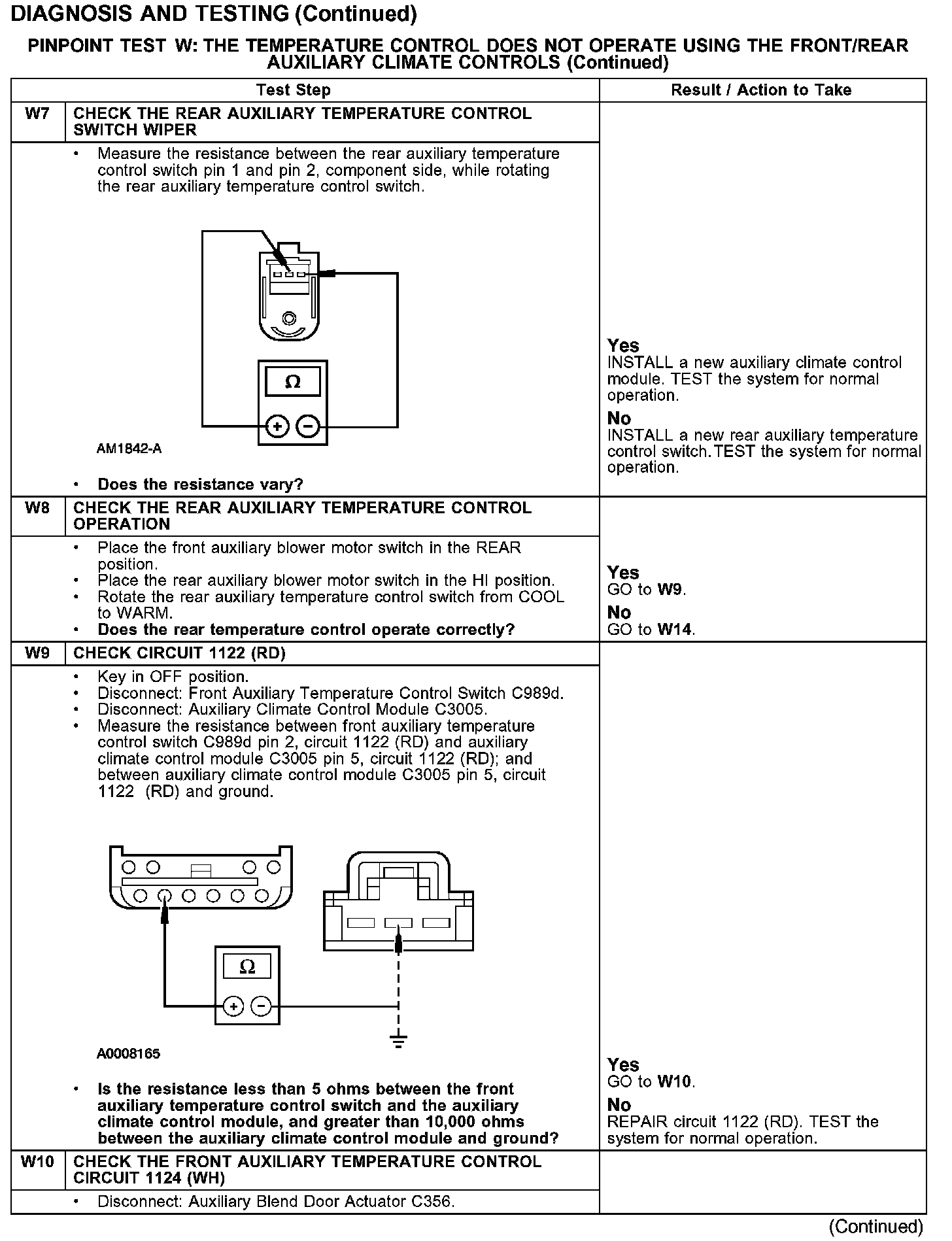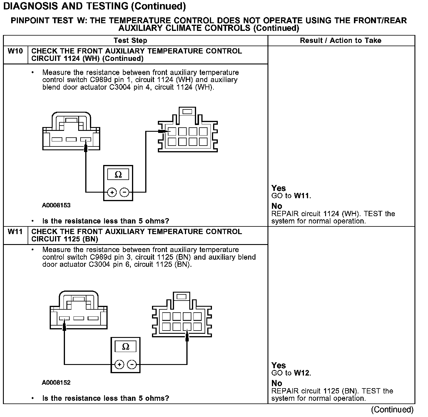 PINPOINT TEST W: THE TEMPERATURE CONTROL DOES NOT OPERATE USING THE FRONT/REAR AUXILIARY CLIMATE CONTROLS