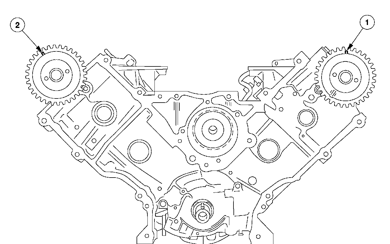 - RH camshaft timing mark is approximately at 11 o'clock.