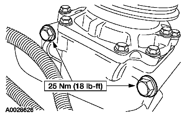 Loosen the bolts enough for the compressor to slide down one inch, allowing access for crankshaft position (CKP) sensor removal.