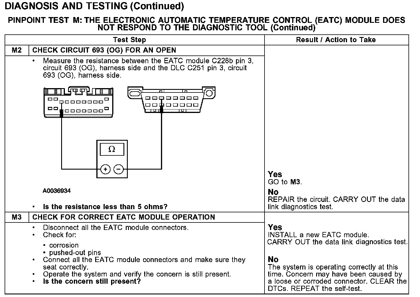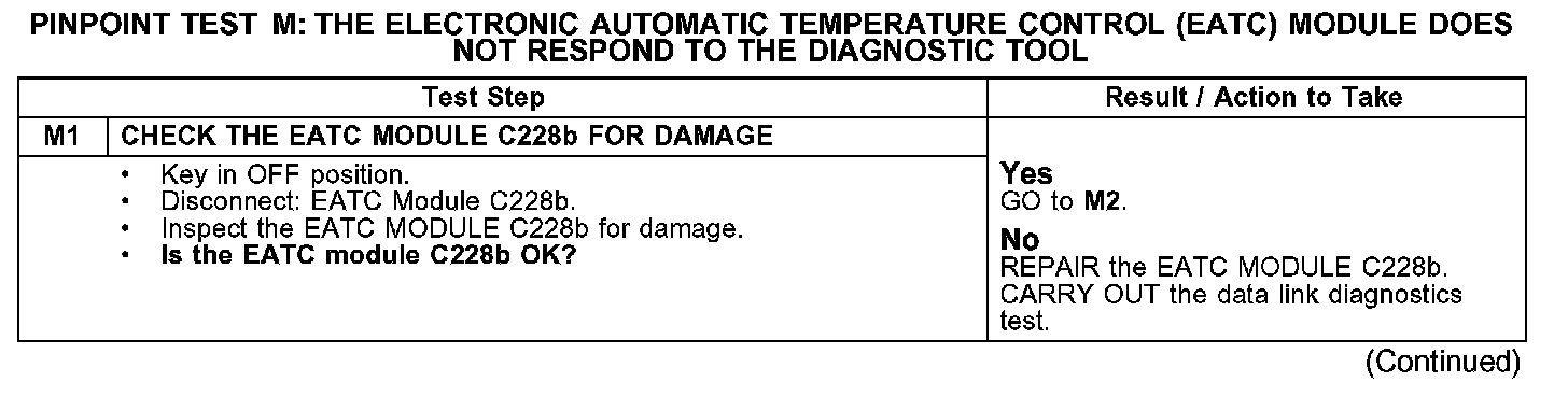PINPOINT TEST M: THE ELECTRONIC AUTOMATIC TEMPERATURE CONTROL (EATC) MODULE DOES NOT RESPOND TO THE DIAGNOSTIC TOOL
