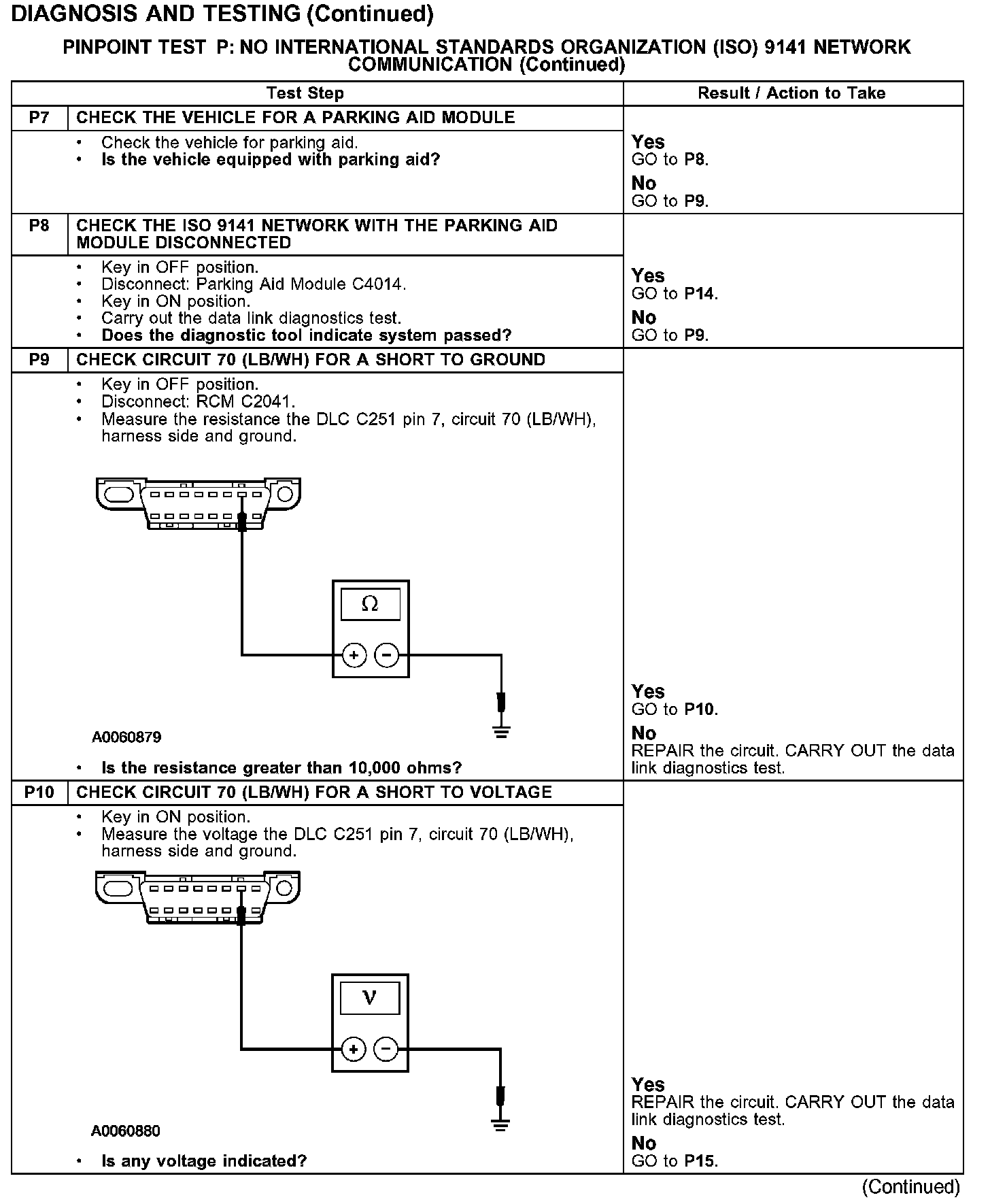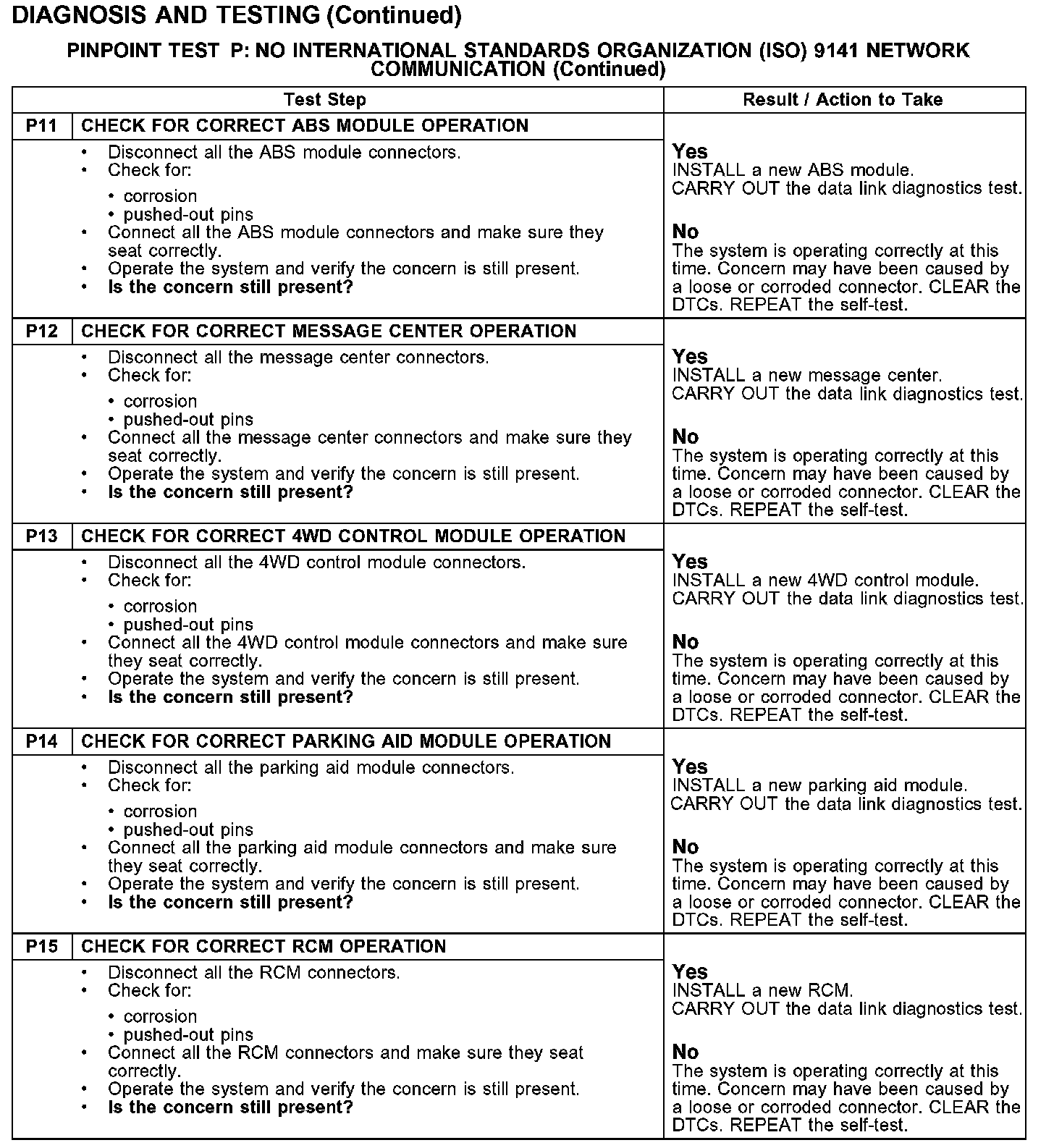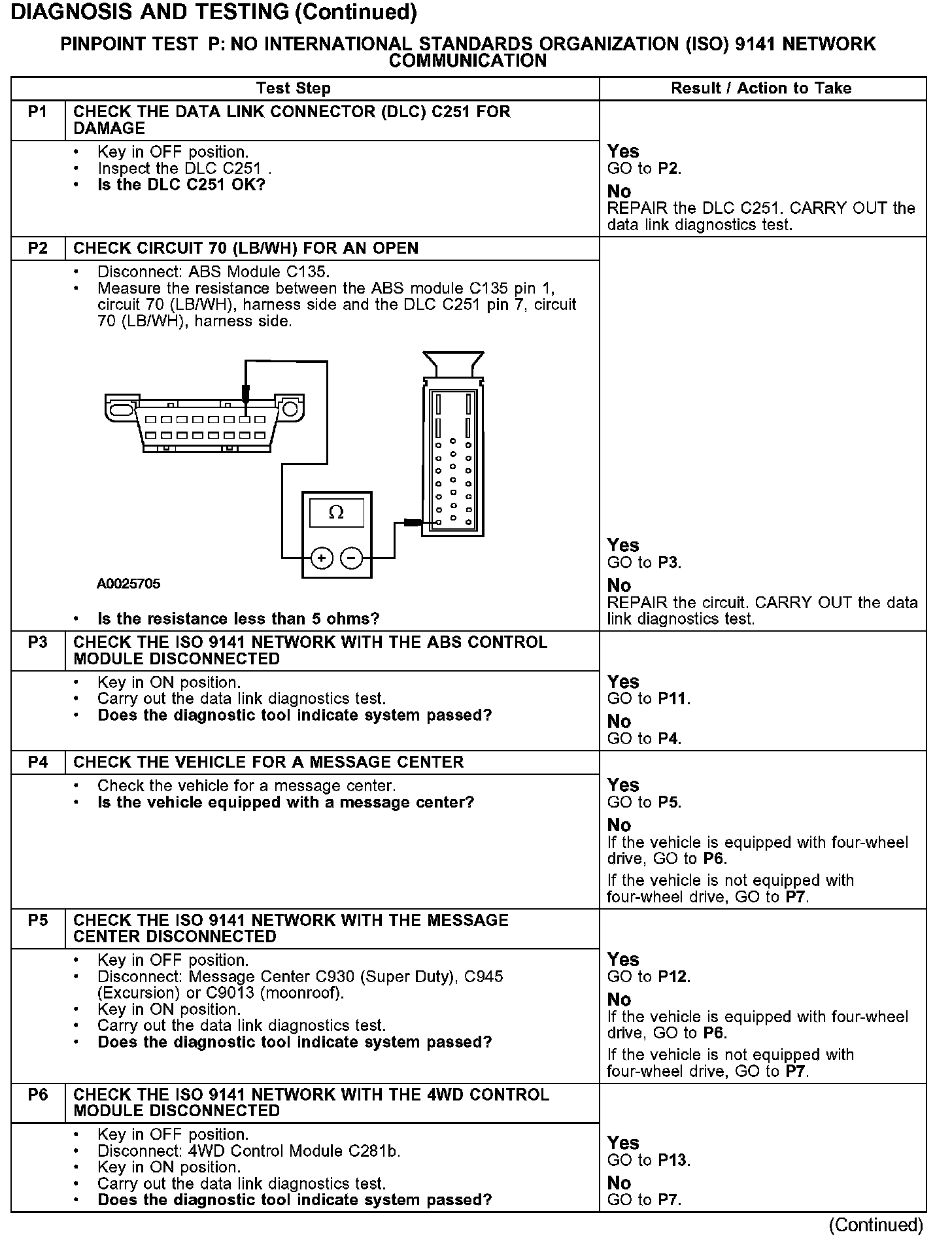 PINPOINT TEST P: NO INTERNATIONAL STANDARDS ORGANIZATION (ISO) 9141 NETWORK COMMUNICATION
