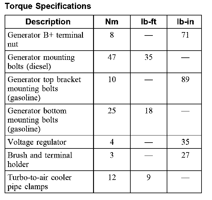 Torque Specifications: