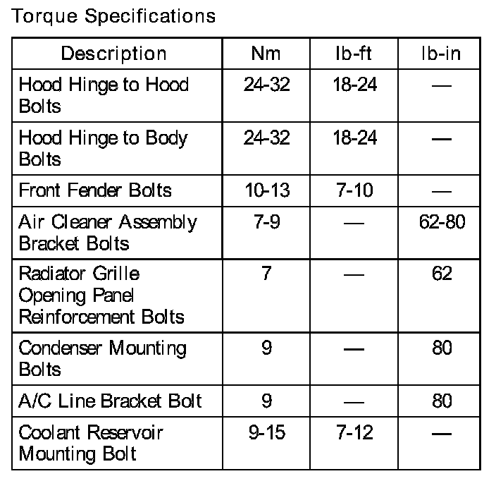 Torque Specifications: