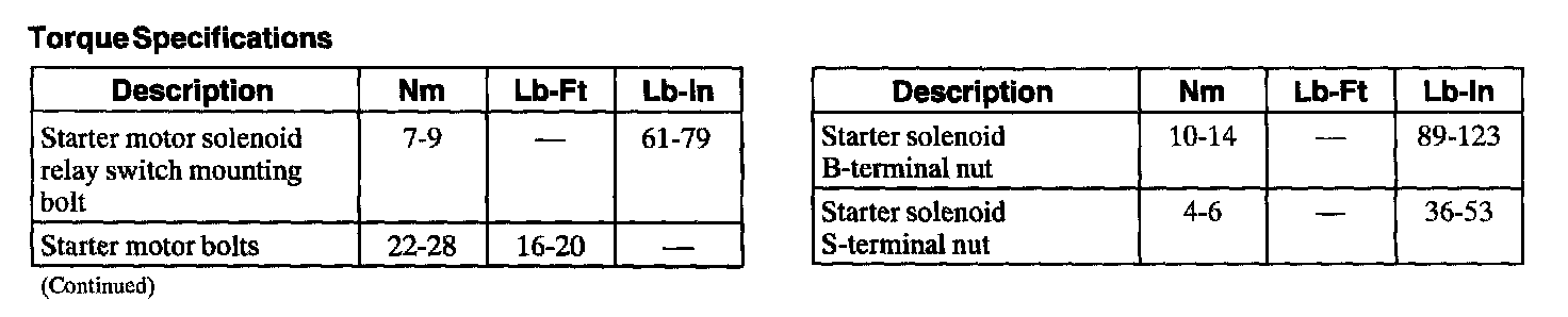 Starter Motor: Specifications