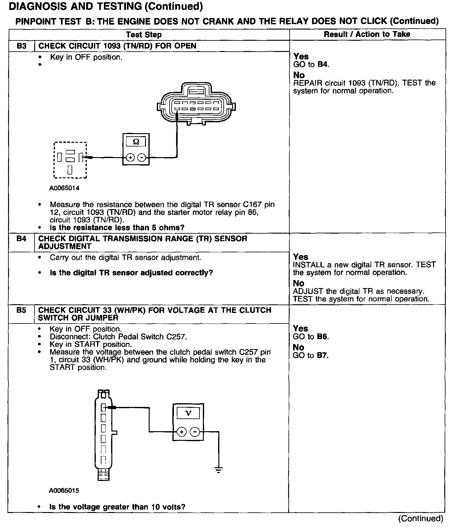 PINPOINT TEST B: THE ENGINE DOES NOT CRANK AND THE RELAY DOES NOT CLICK