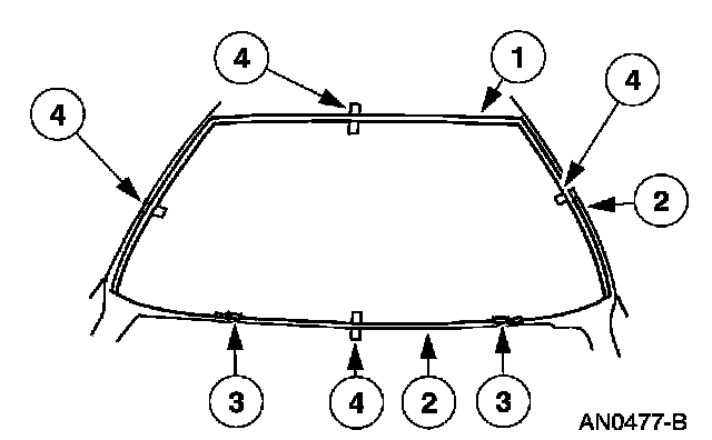 7. NOTE: If reinstalling the removed windshield glass, complete this step and go to step 10. If installing a new windshield glass, skip step 7 and go to step 8.