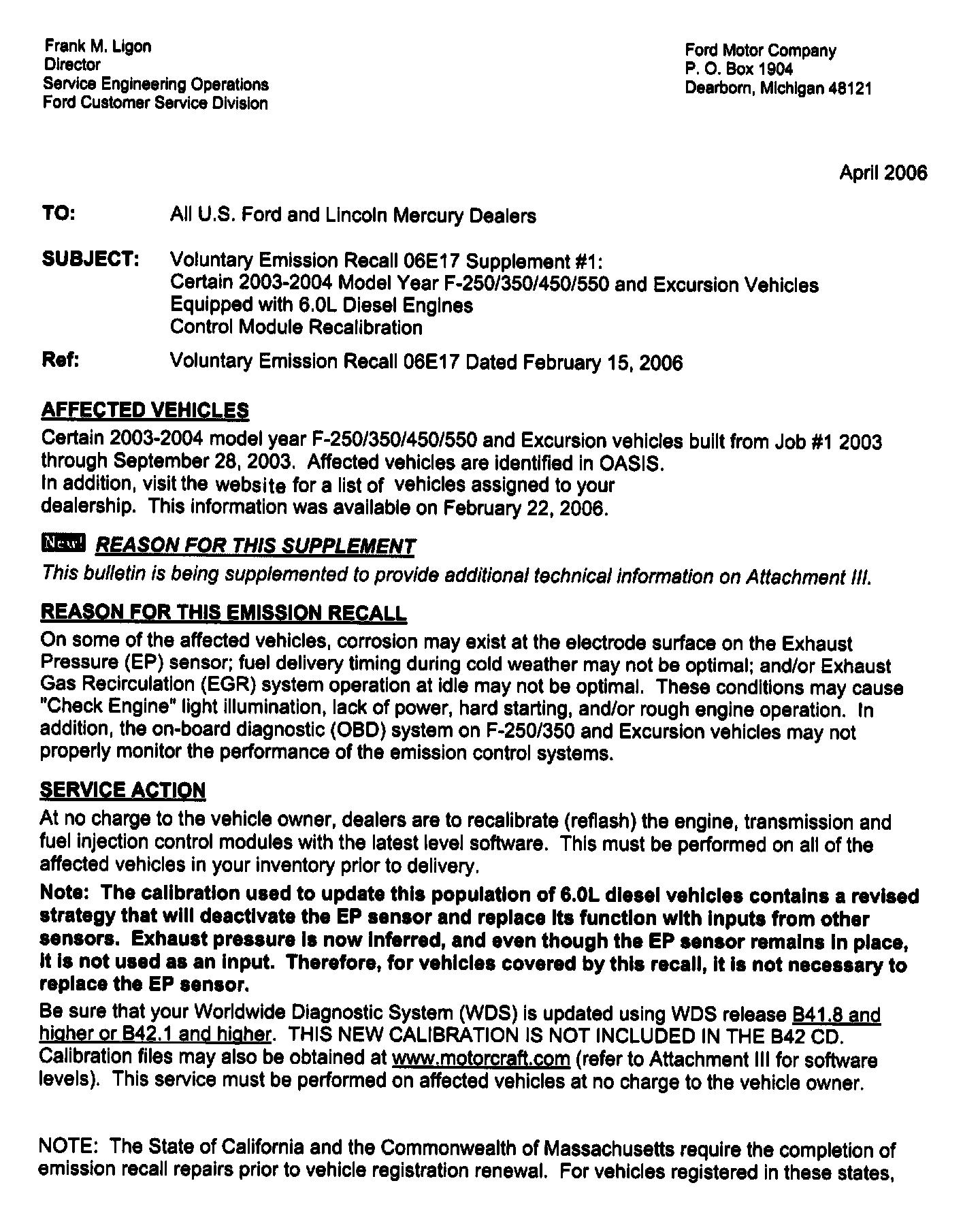 Excursion 2WD V8-6.0L DSL Turbo VIN P