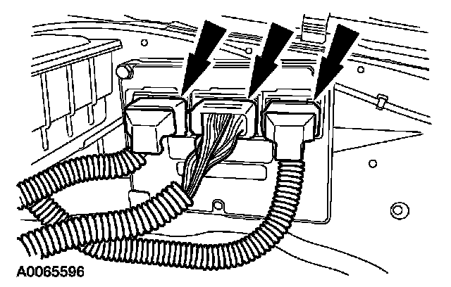 4. Disconnect the powertrain control module (PCM) electrical connectors.