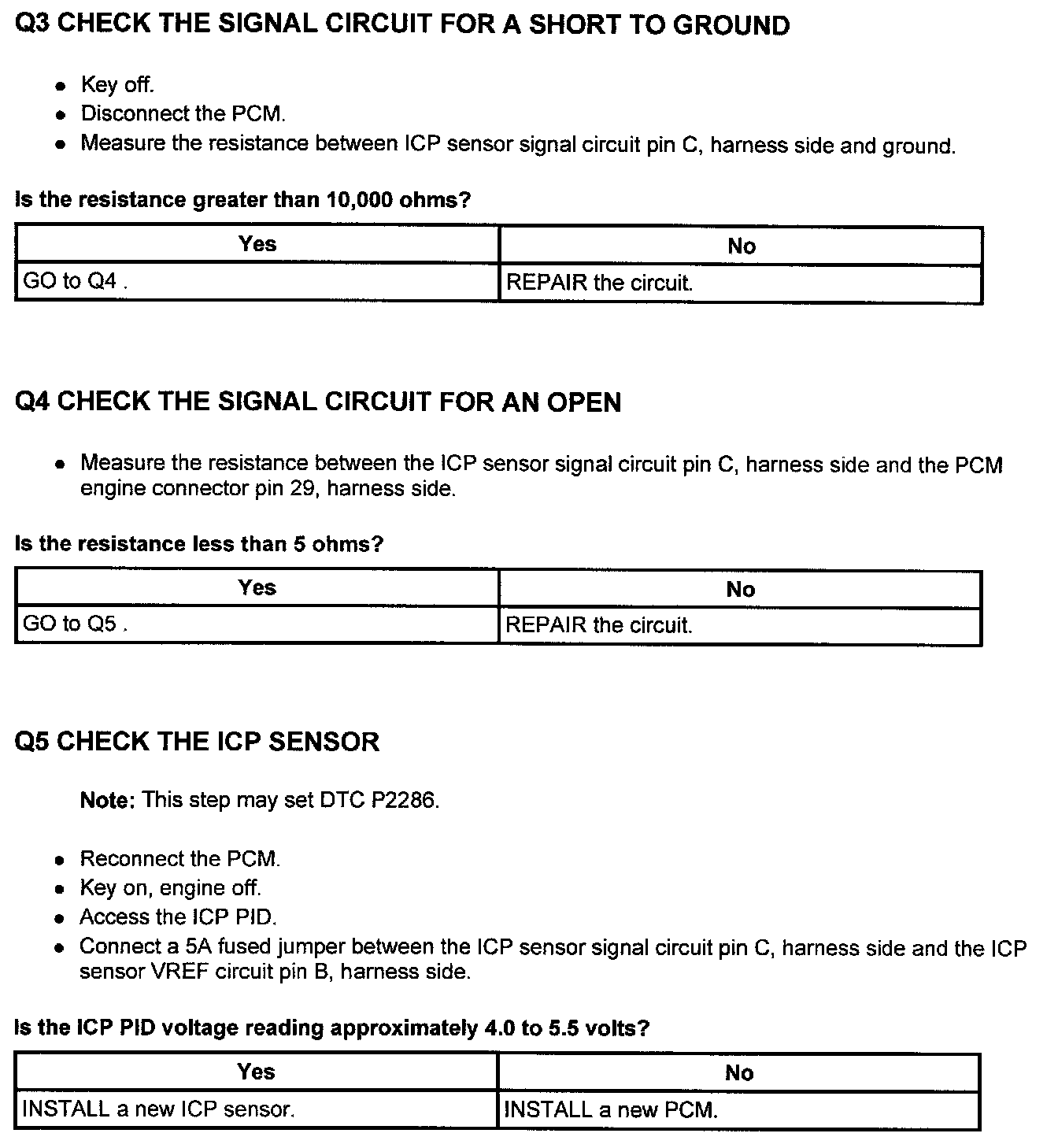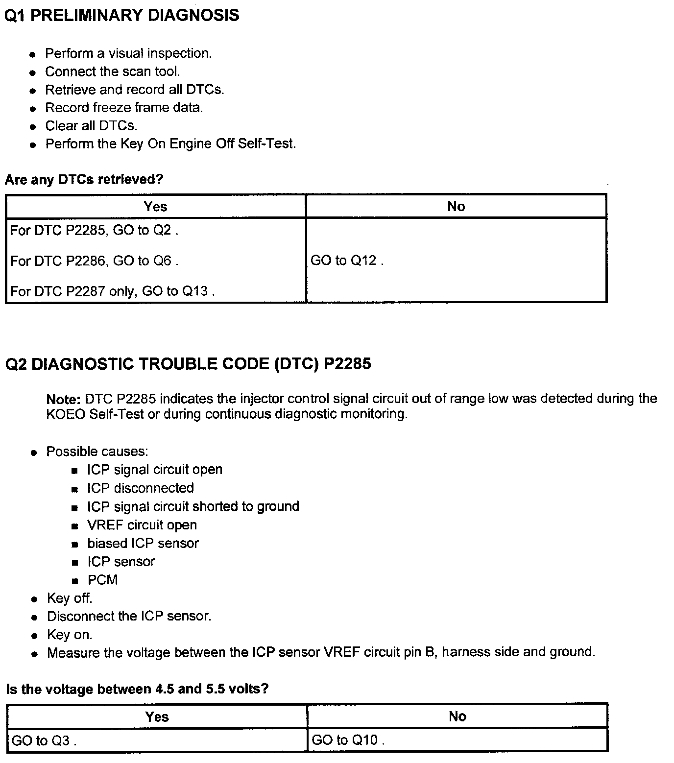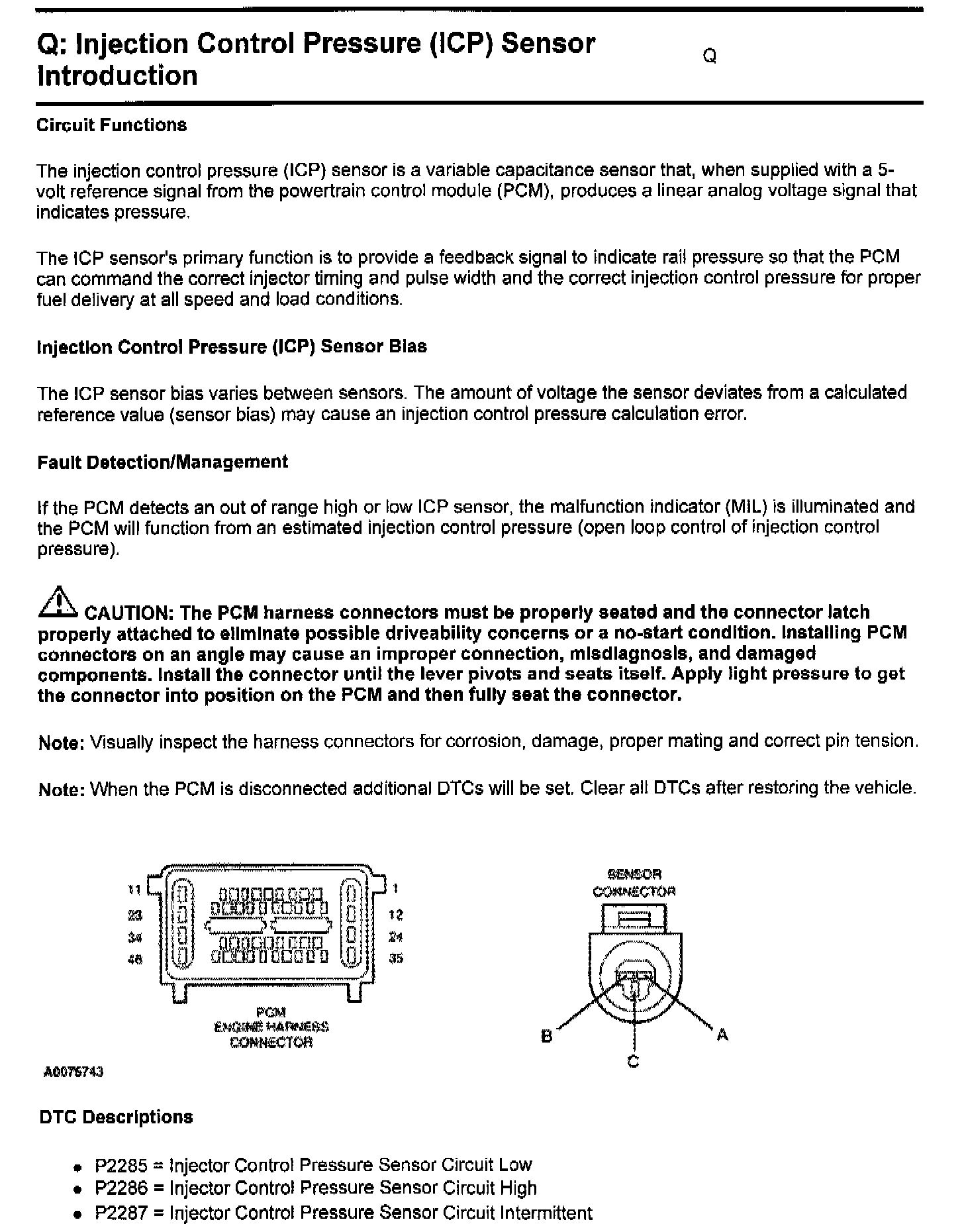 PINPOINT TEST Q: INJECTION CONTROL PRESSURE ( ICP ) SENSOR