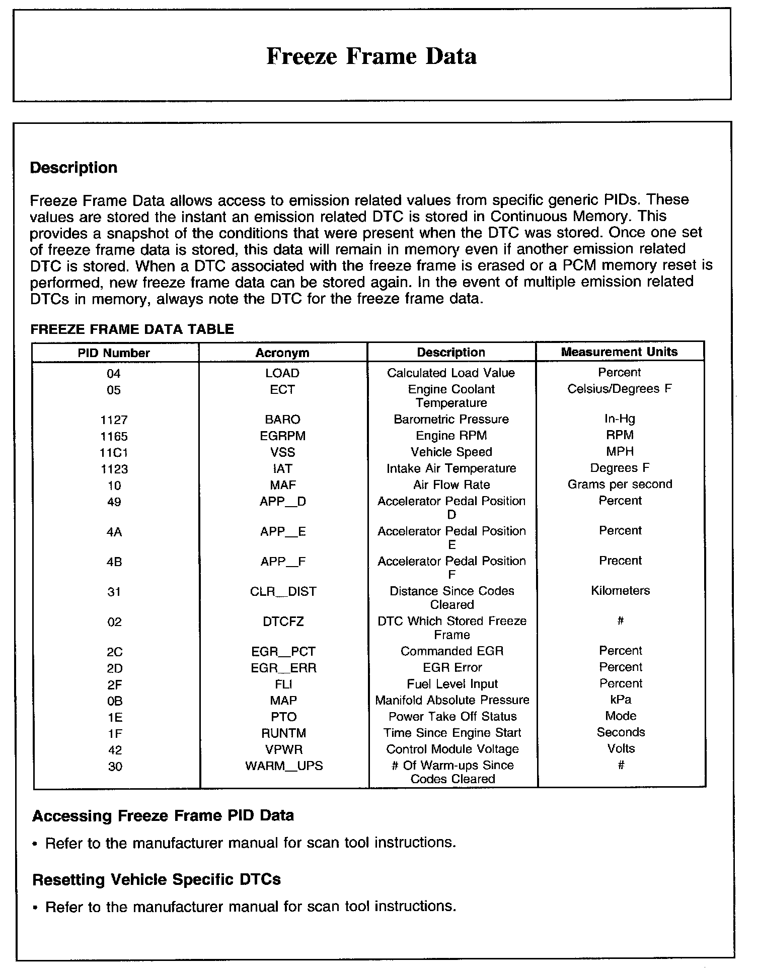 Freeze Frame Data