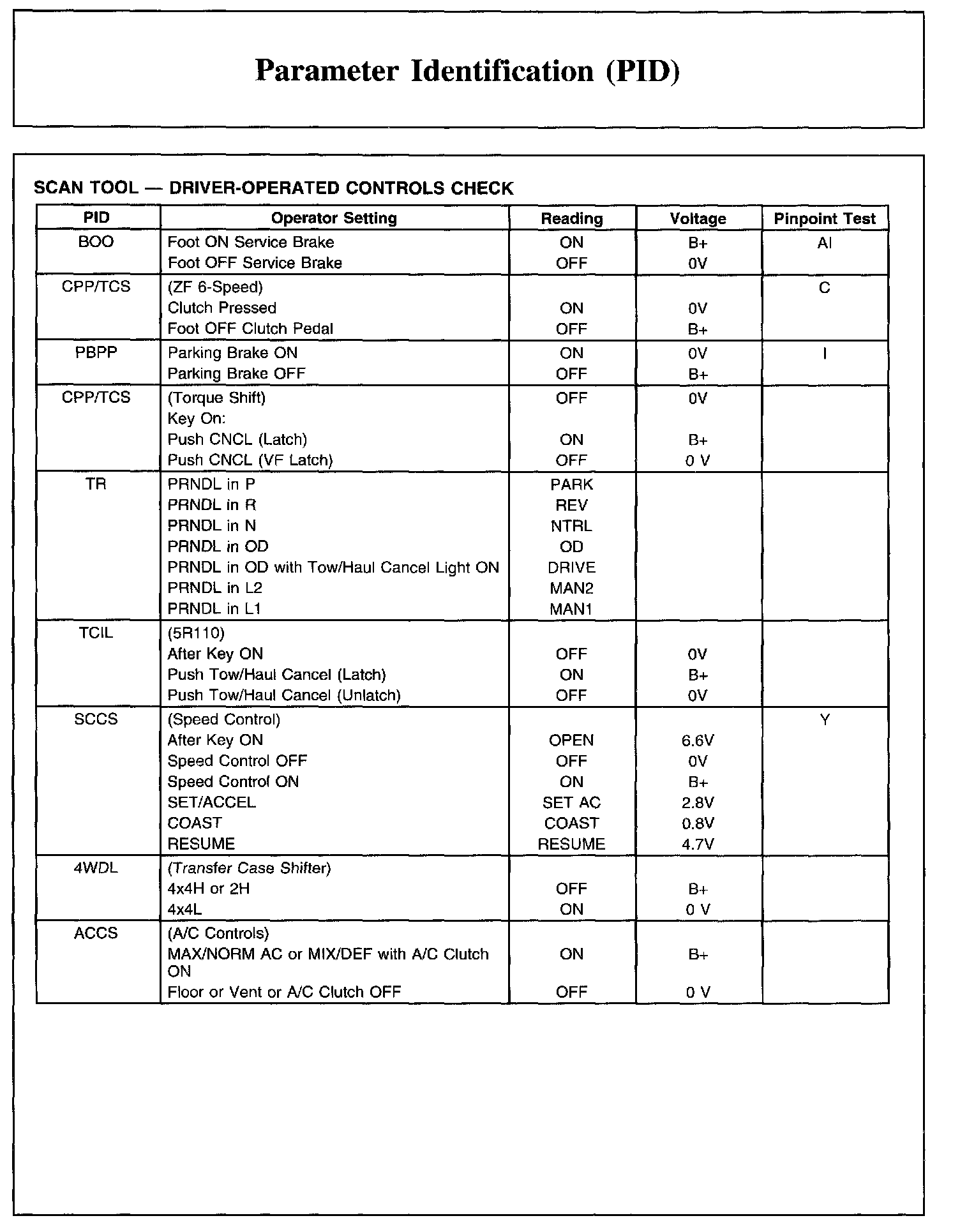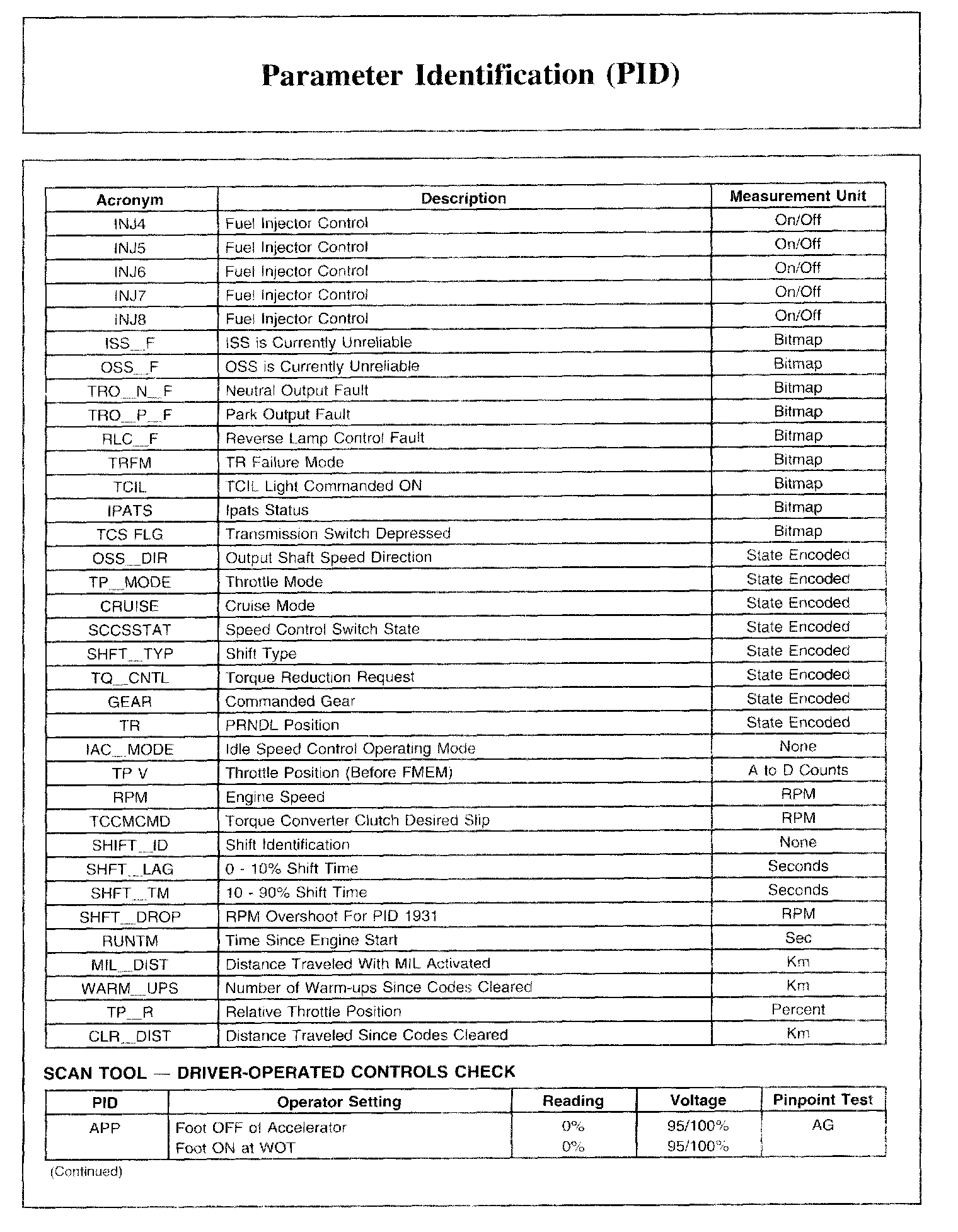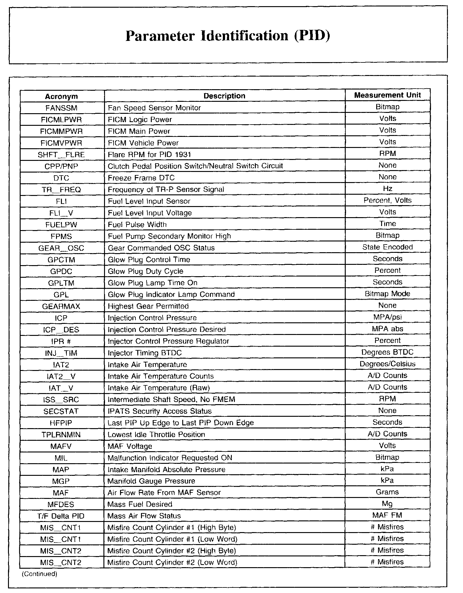 PARAMETER IDENTIFICATION (PID)Parameter Identification (PID) List, Part 1: