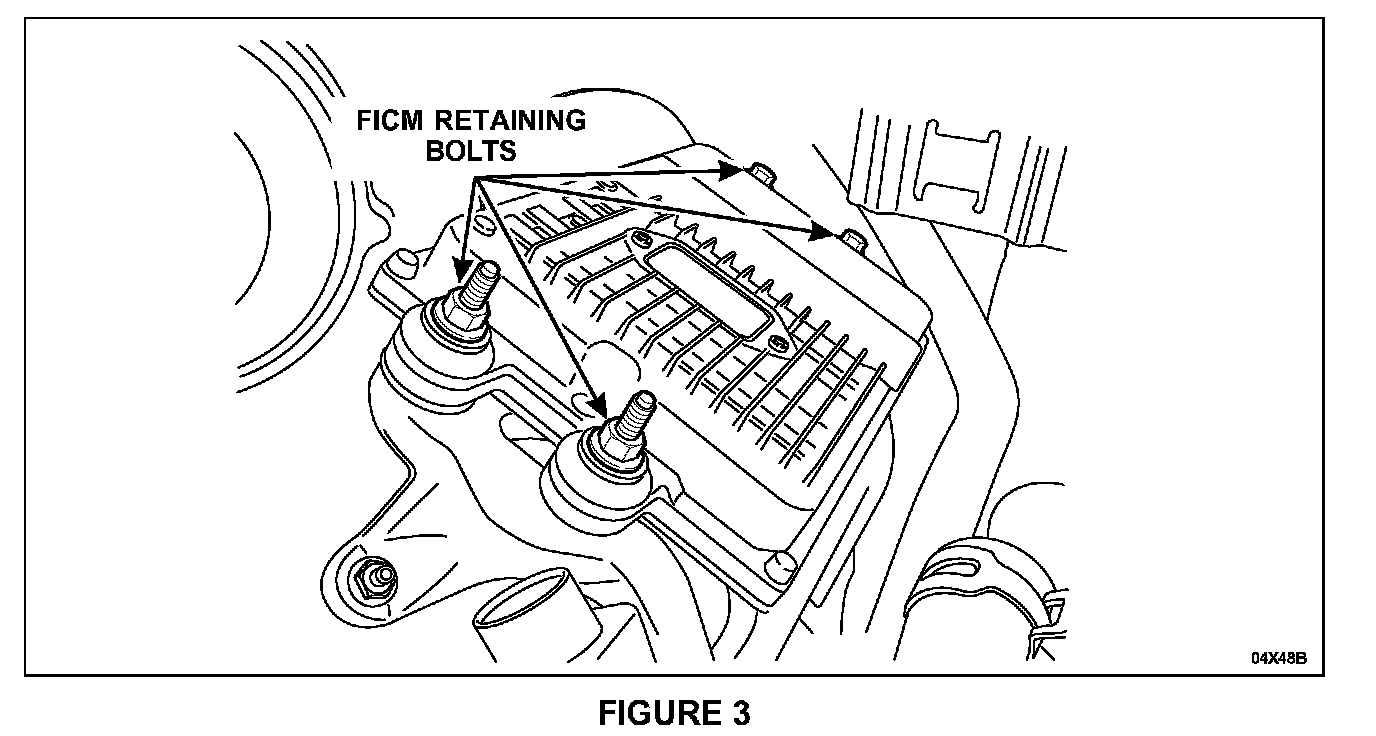 7. Remove the four (4) FICM retaining bolts, then disconnect the three (3) harness connectors from the FICM and remove the FICM. See Figure 3.
