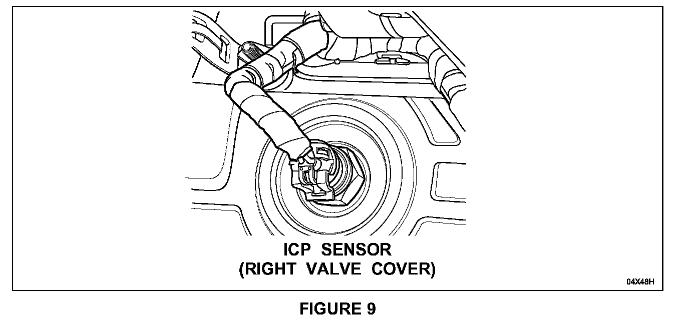 1. Remove the CAC duct (hot air inlet duct) from the passenger side of the engine compartment, then disconnect the ICP sensor. See Figure 9.