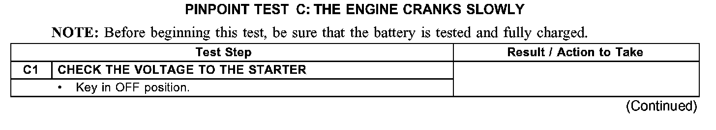 PINPOINT TEST C: THE ENGINE CRANKS SLOWLY