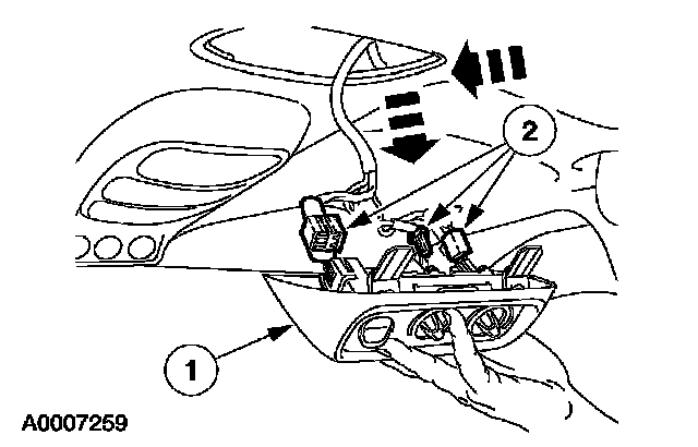 1 Pull down on the front of the auxiliary climate control assembly and slide forward and downward.
