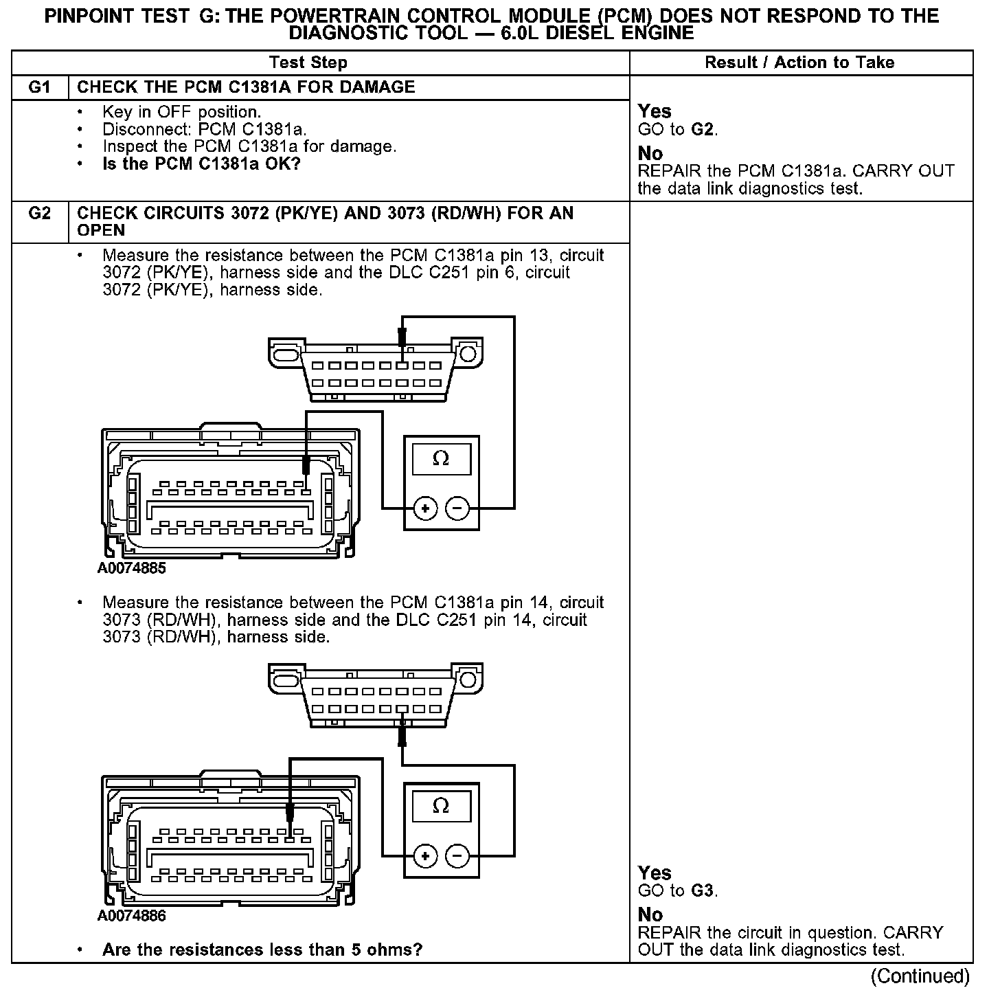 PINPOINT TEST G: THE POWERTRAIN CONTROL MODULE (PCM) DOES NOT RESPOND TO THE DIAGNOSTIC TOOL - 6.0L DIESEL ENGINE