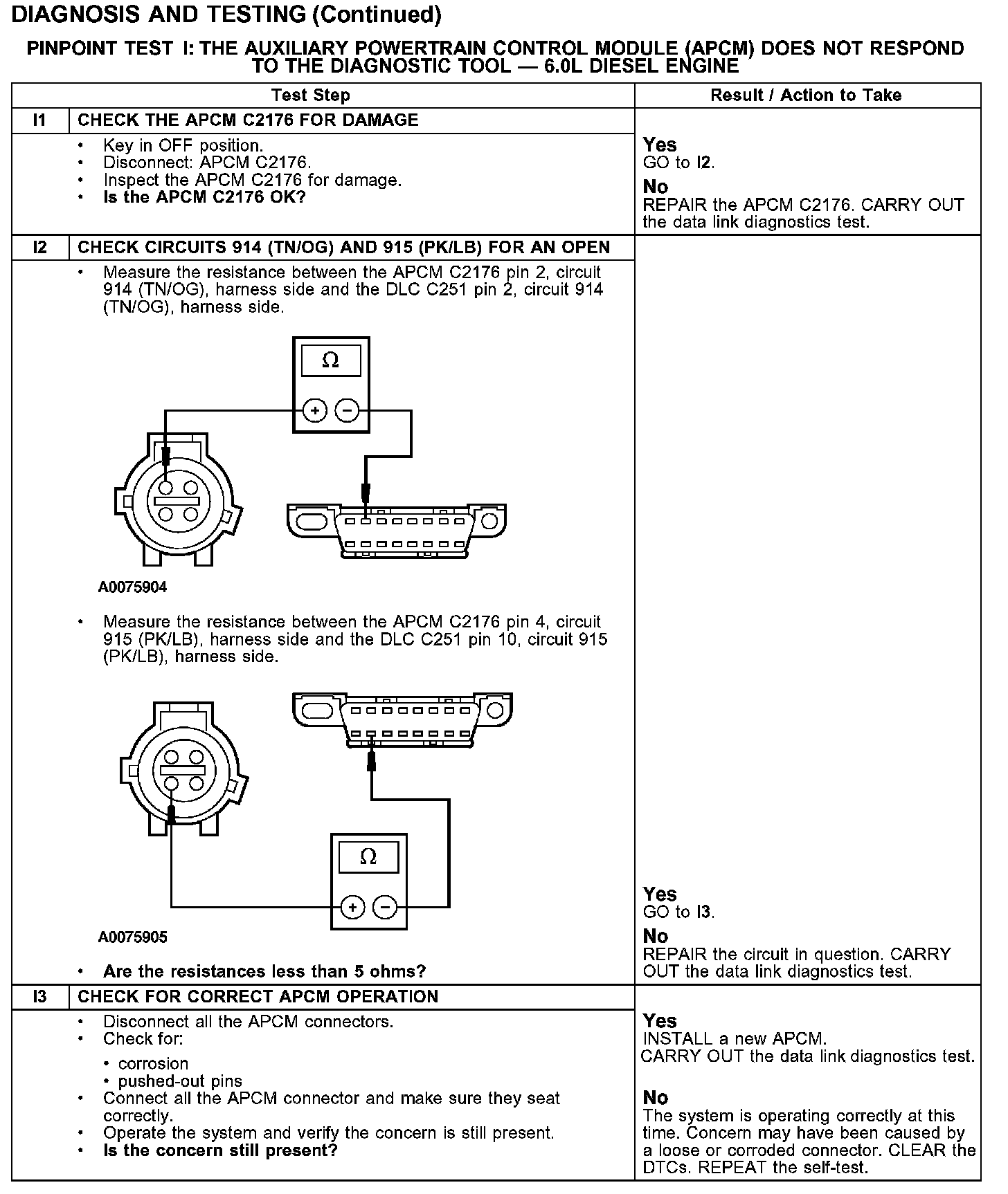 PINPOINT TEST I: THE AUXILIARY POWERTRAIN CONTROL MODULE (APCM) DOES NOT RESPOND TO THE DIAGNOSTIC TOOL - 6.0L DIESEL ENGINE