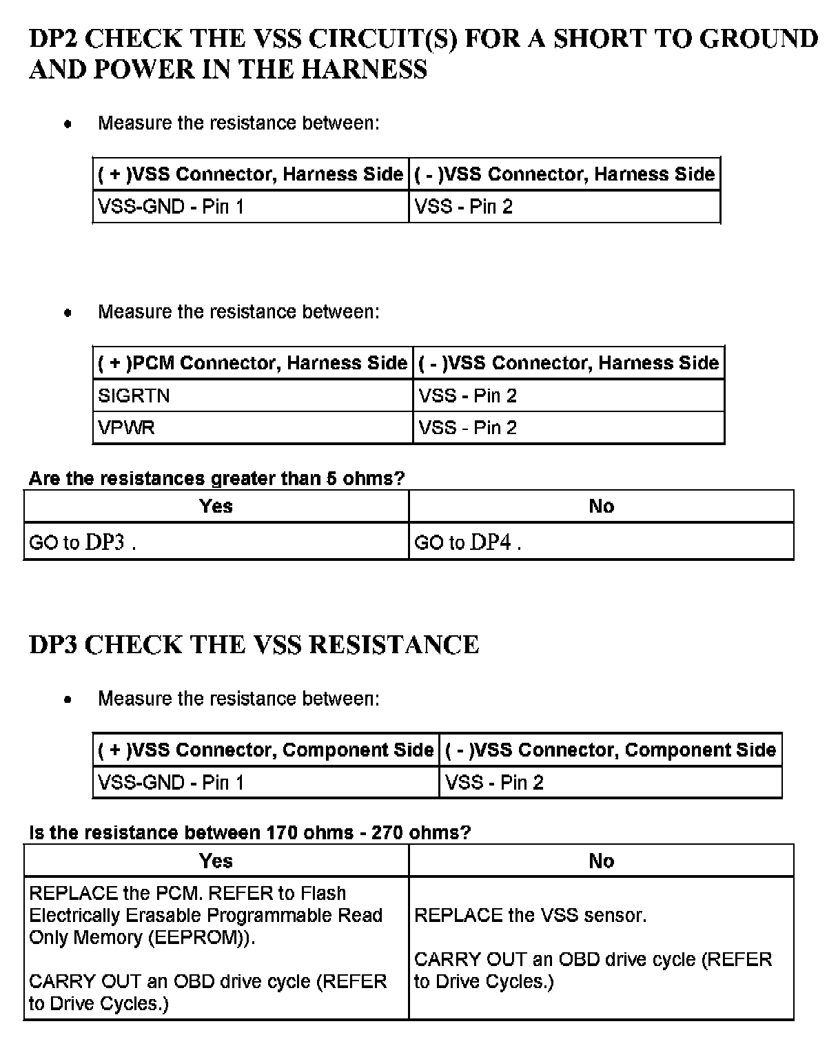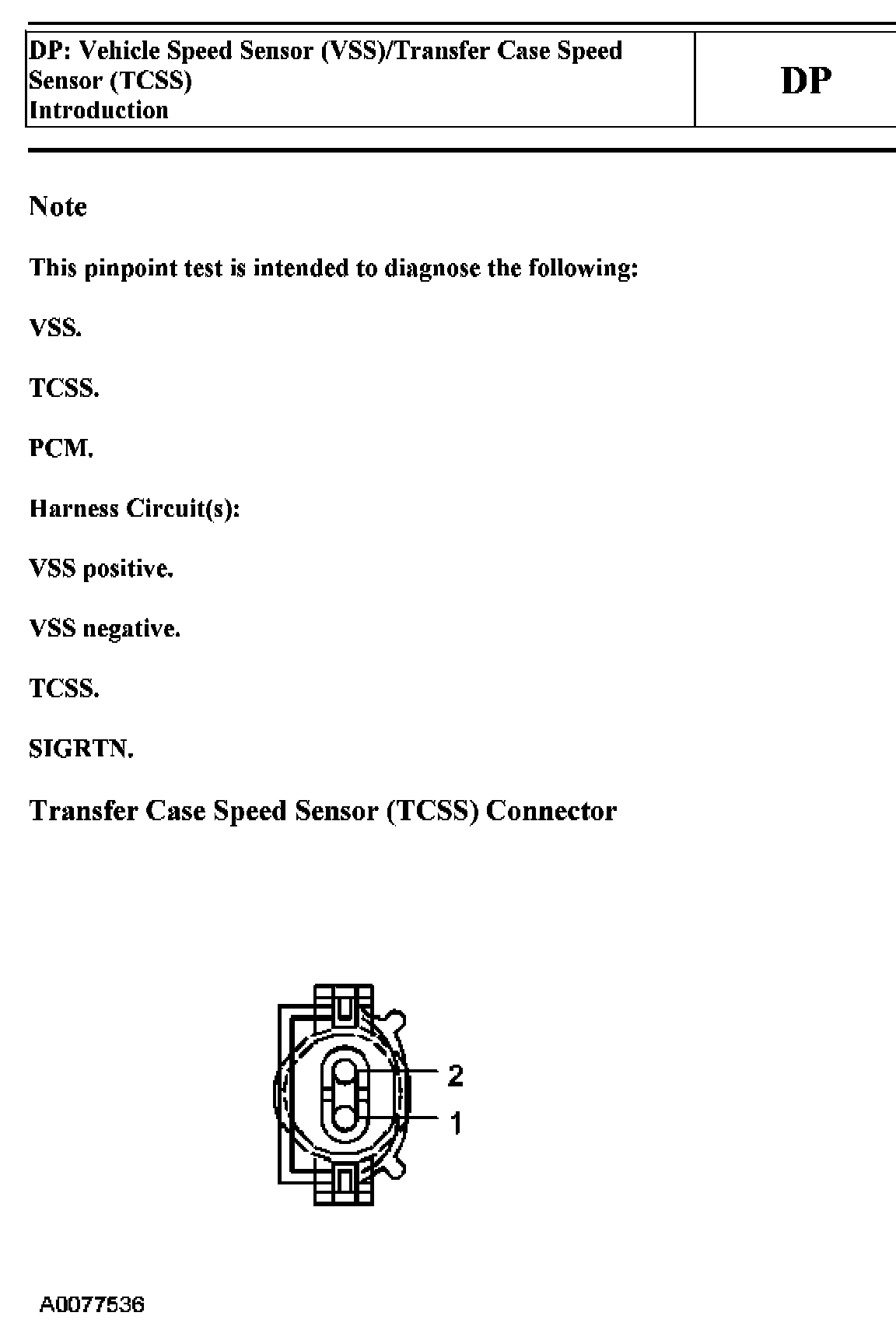 Tests DP: Vehicle Speed Sensor/Transfer Case Speed Sensor