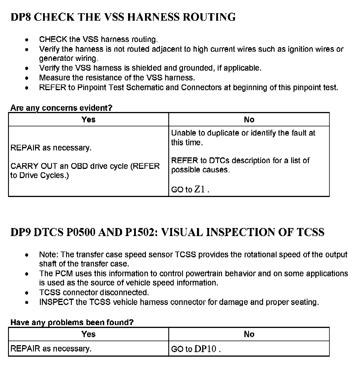 Home >> Ford >> 2004 >> Excursion 4WD V10-6.8L VIN S >> Repair and Diagnosis >> Powertrain Management >> Computers and Control Systems >> Testing and Inspection >> Pinpoint Tests >> Tests DP: Vehicle Speed Sensor/Transfer Case Speed Sensor