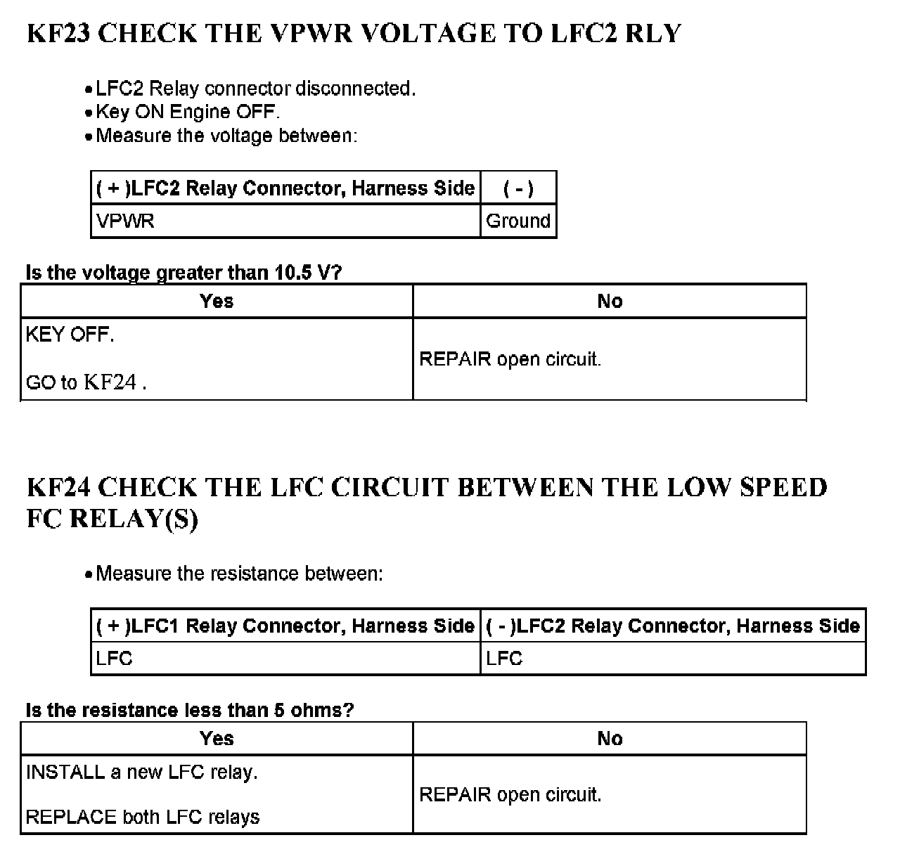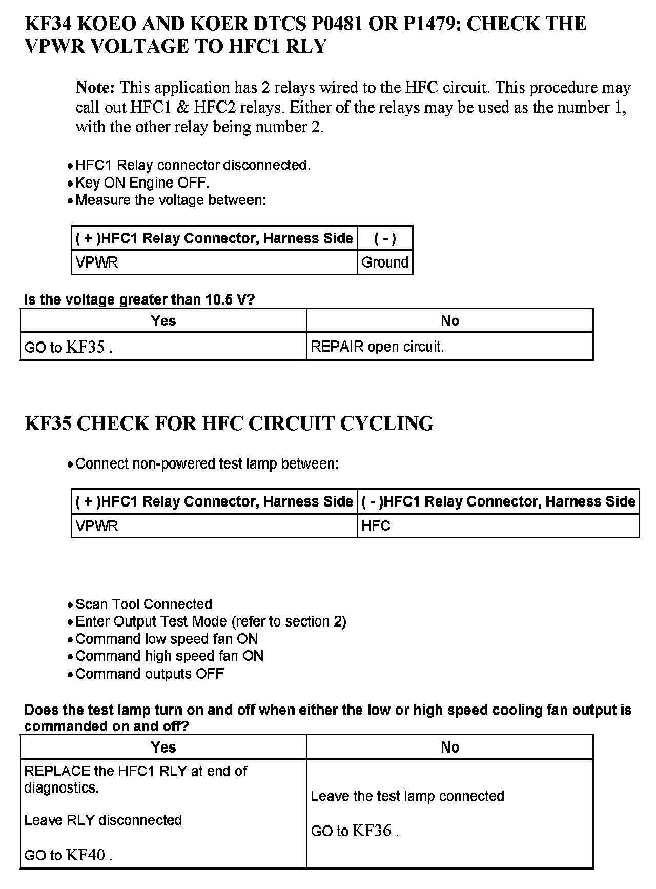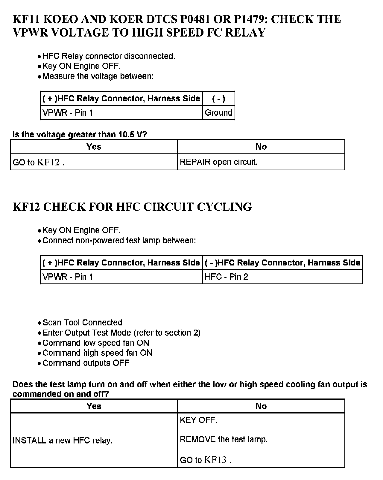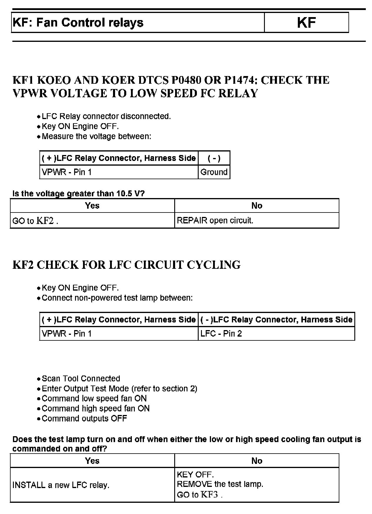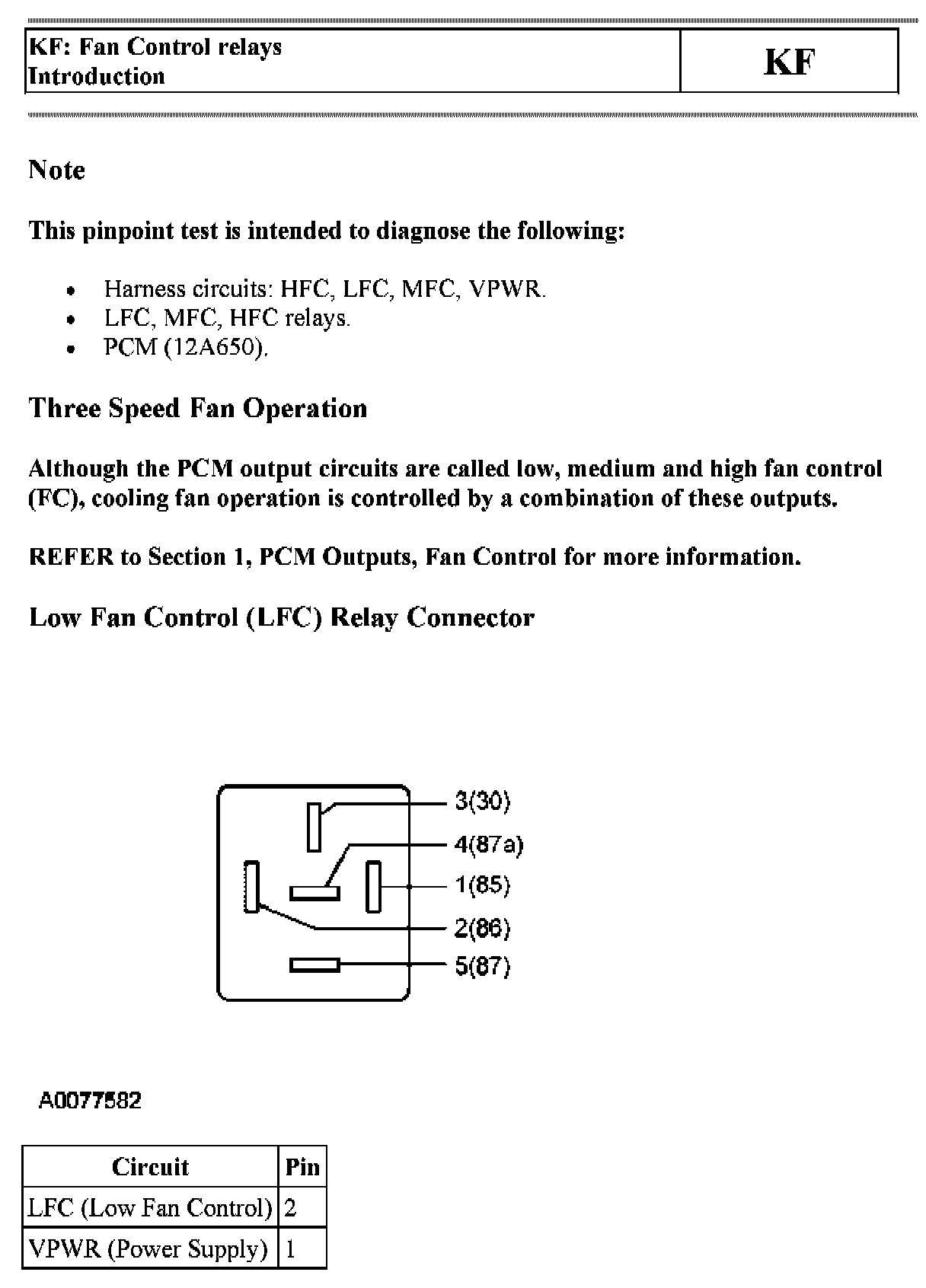 PINPOINT TEST KF: FAN CONTROL RELAYS