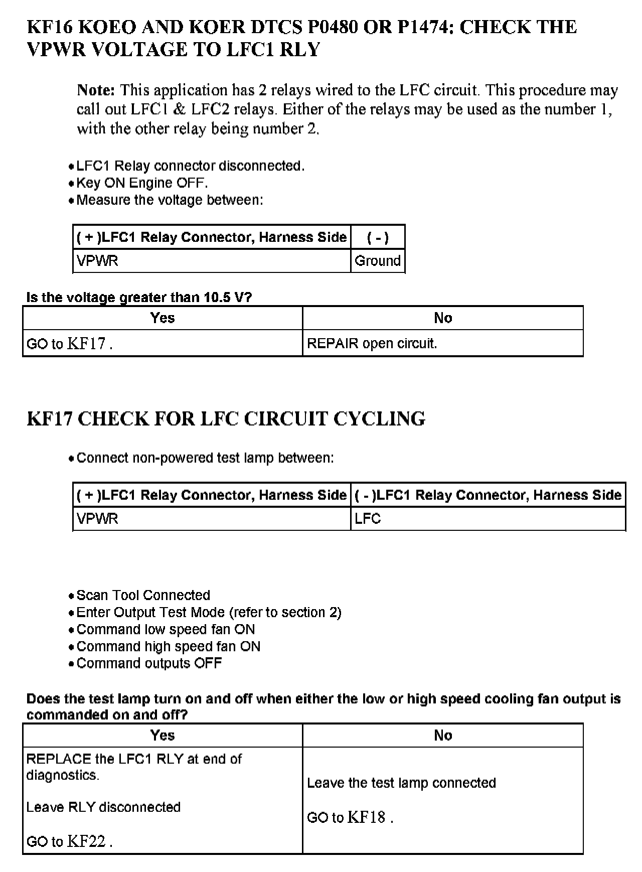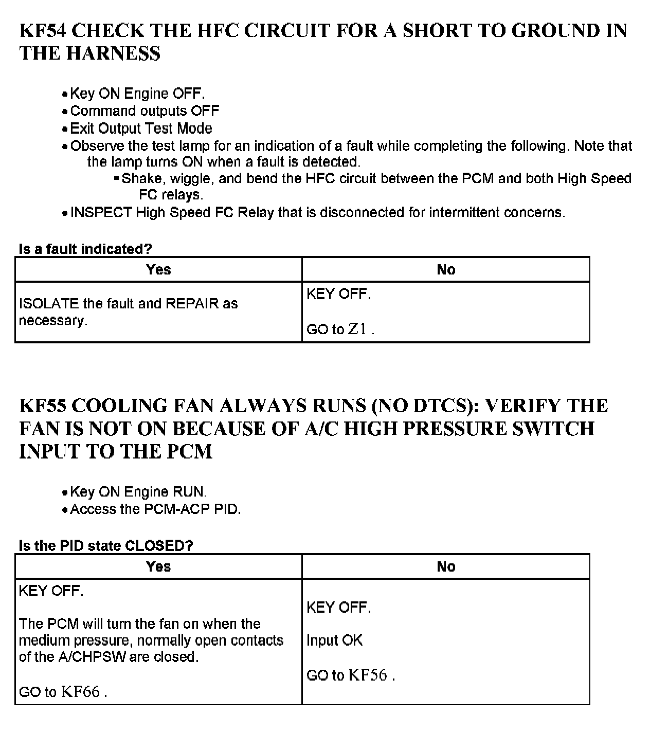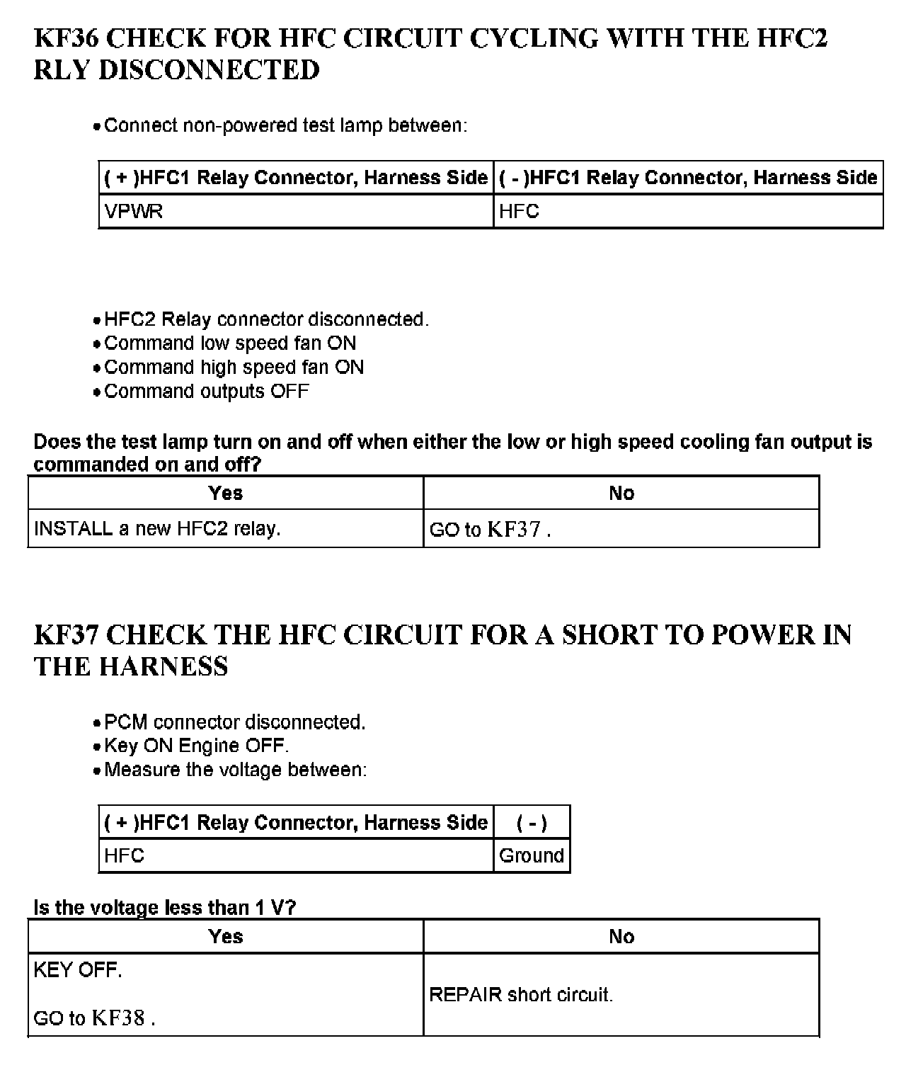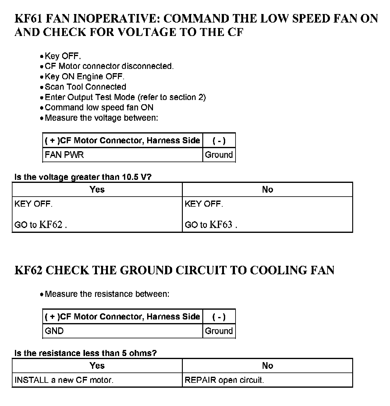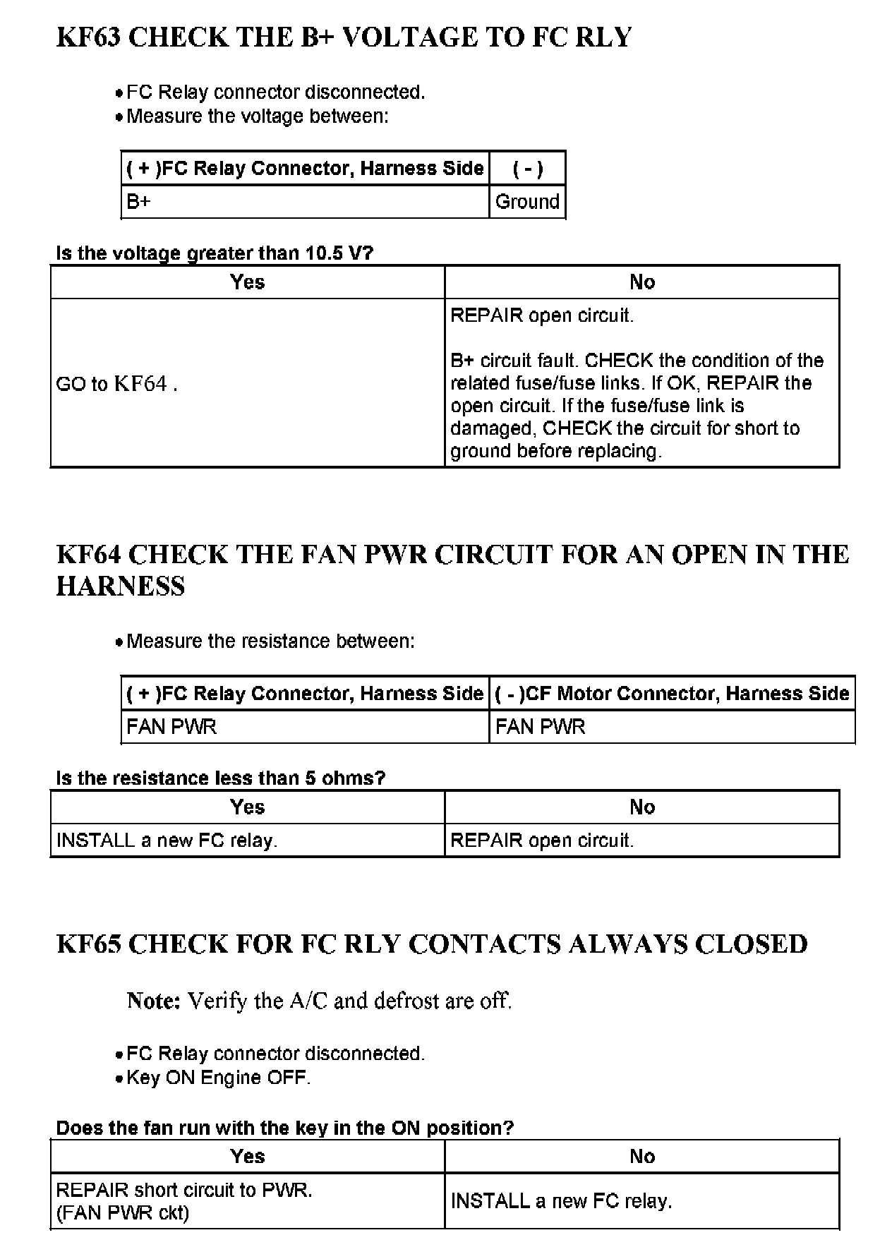 PINPOINT TEST KF: FAN CONTROL RELAYS