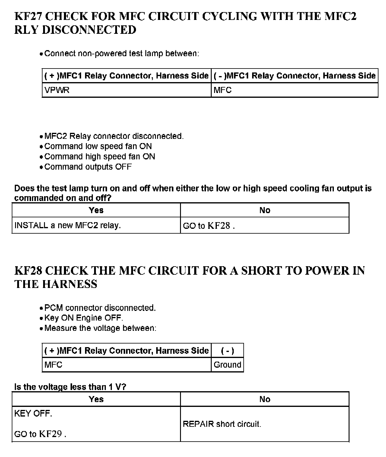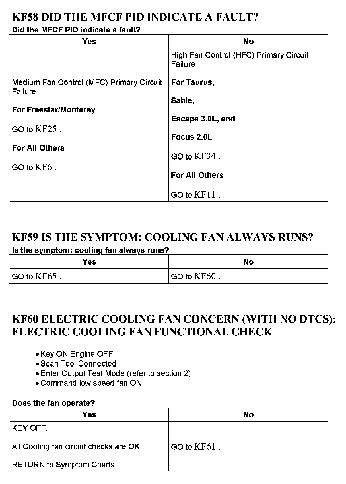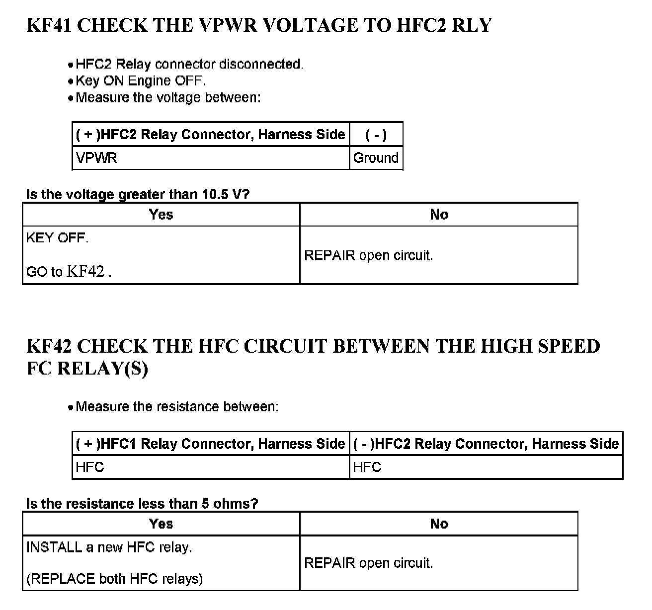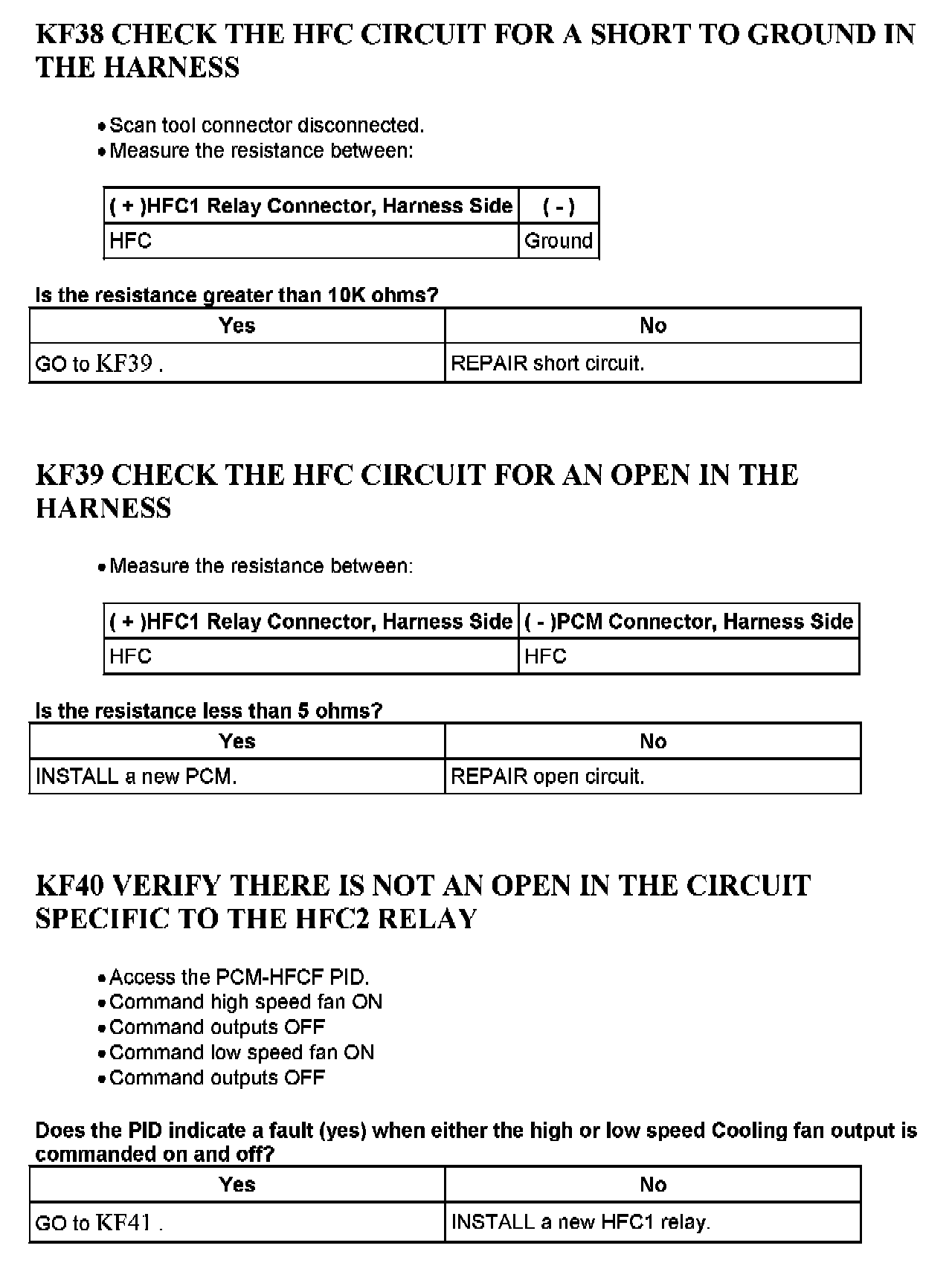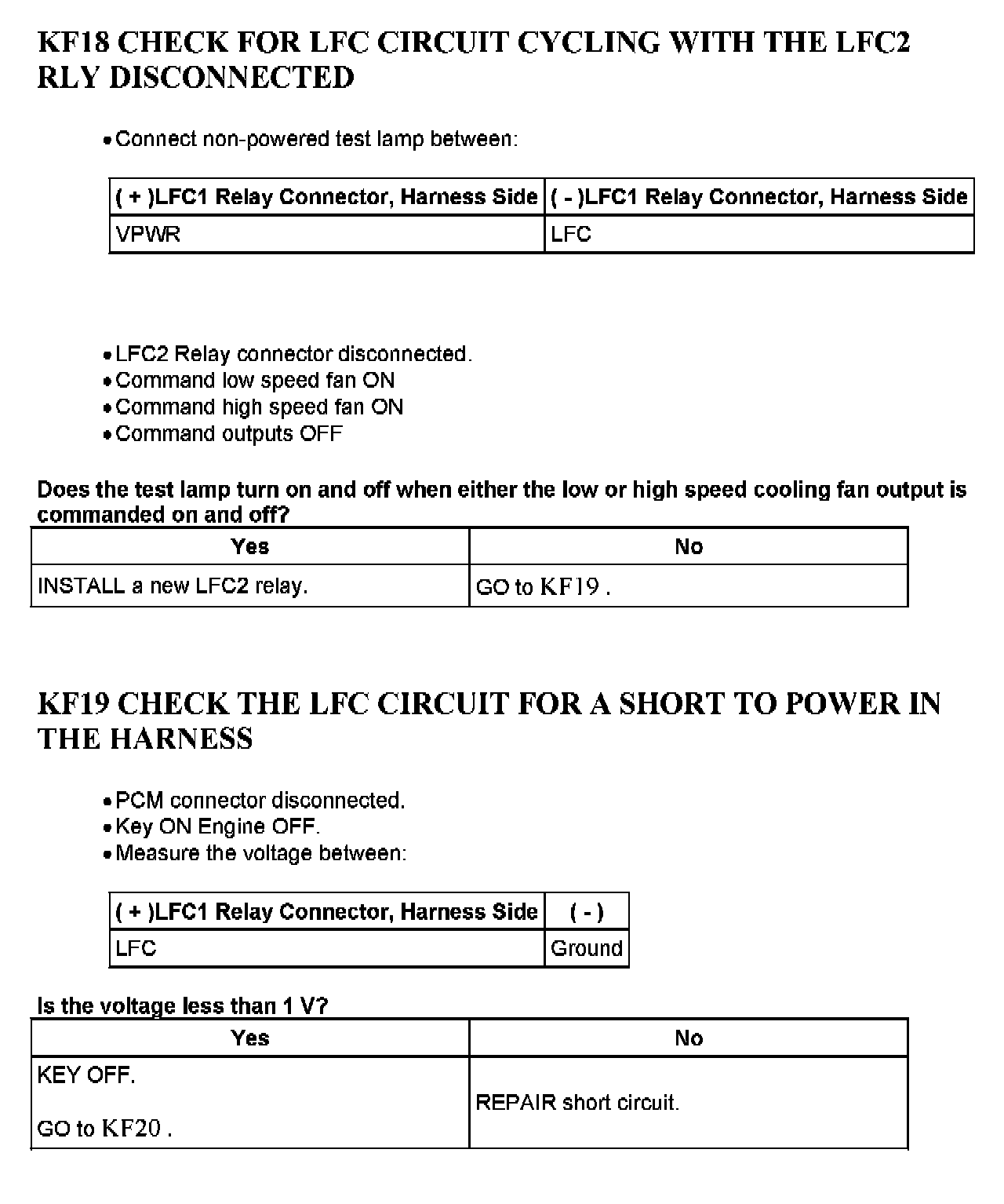 PINPOINT TEST KF: FAN CONTROL RELAYS