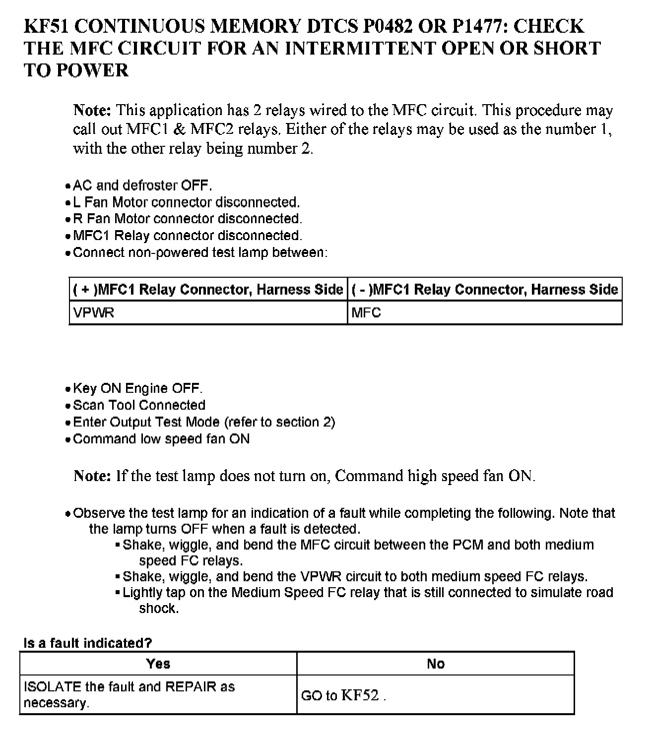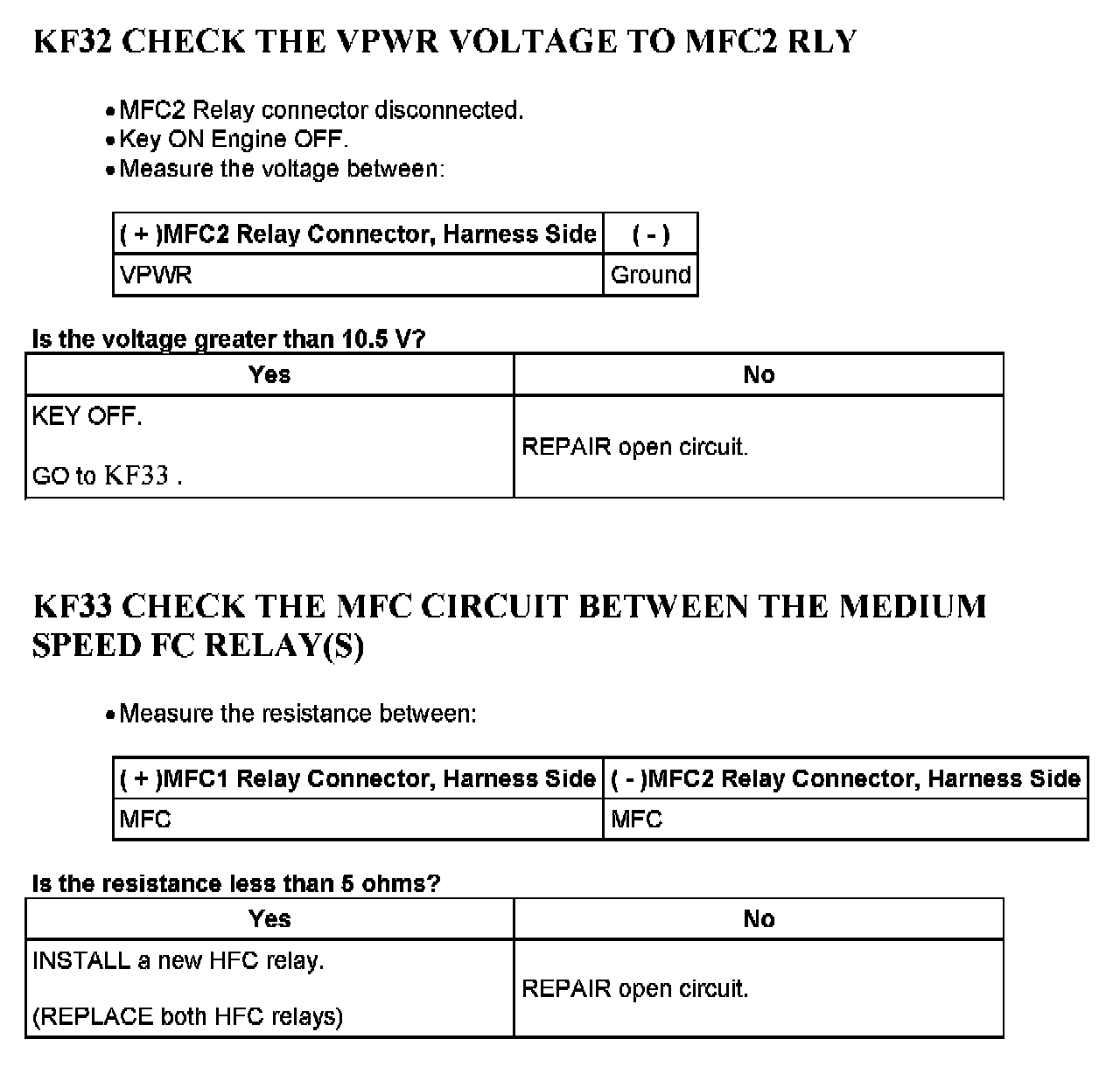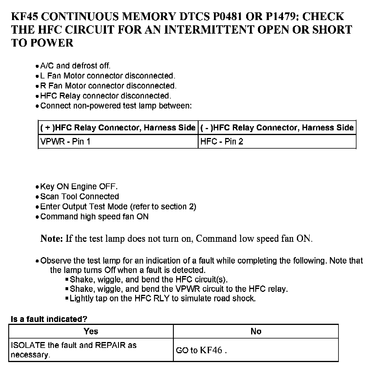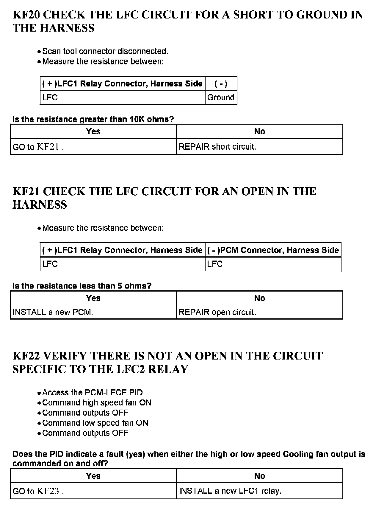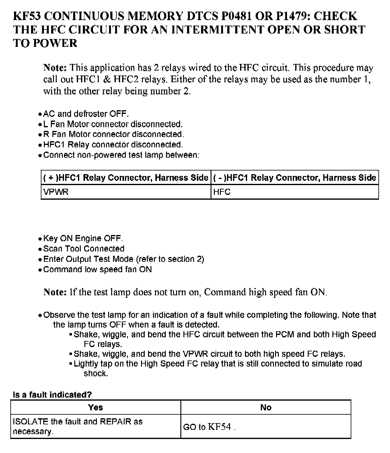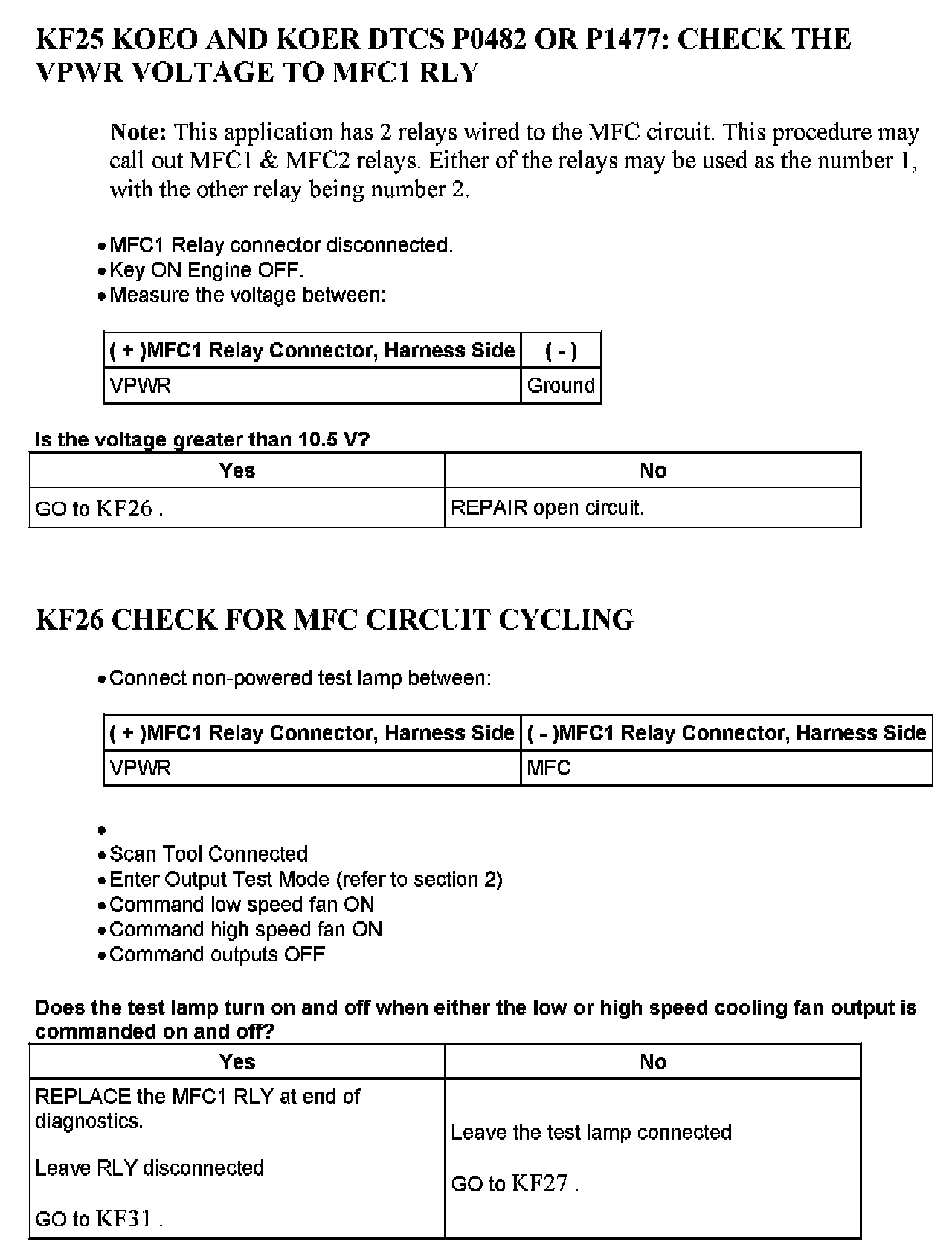 PINPOINT TEST KF: FAN CONTROL RELAYS