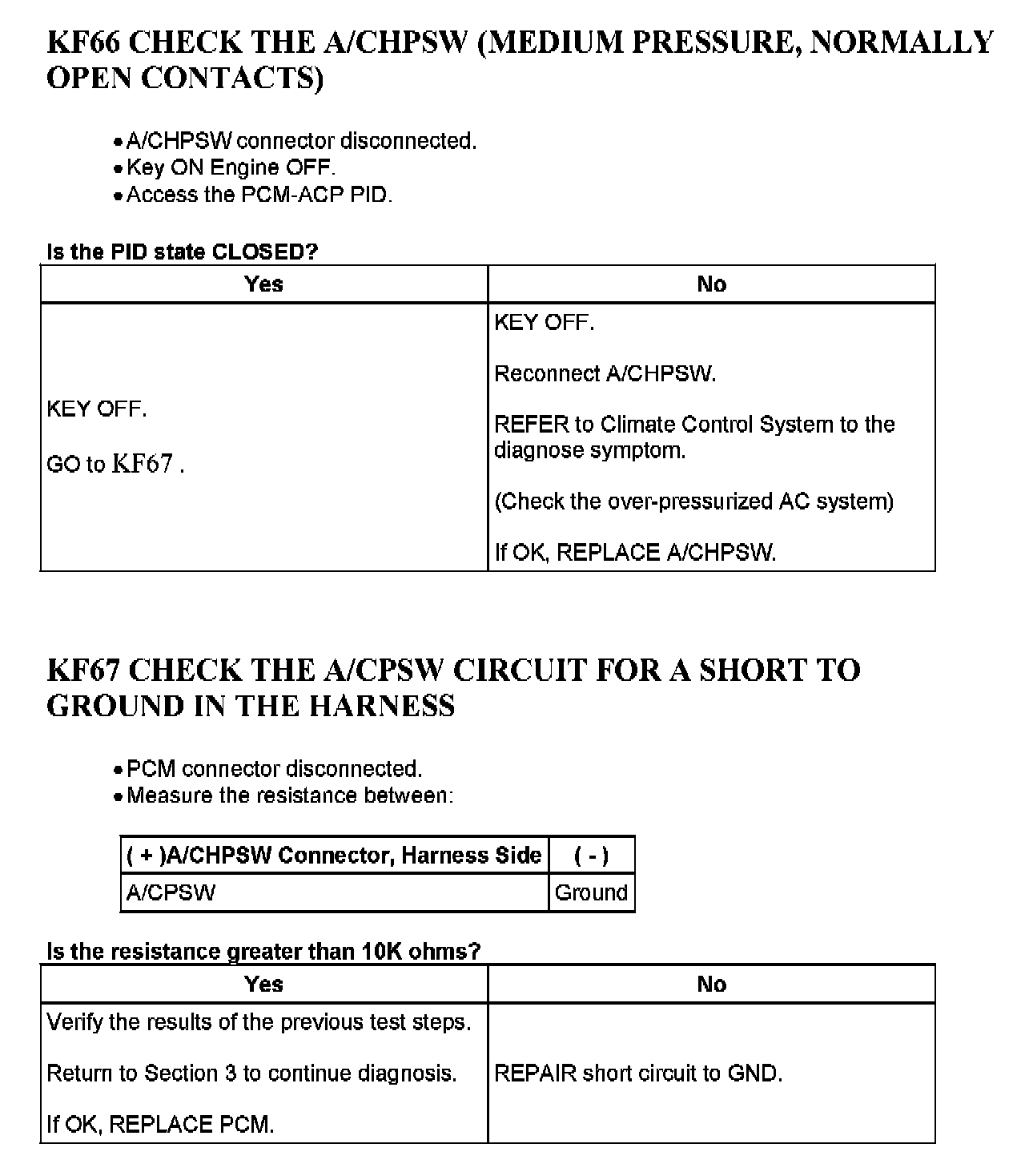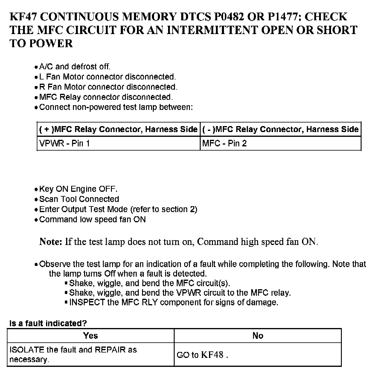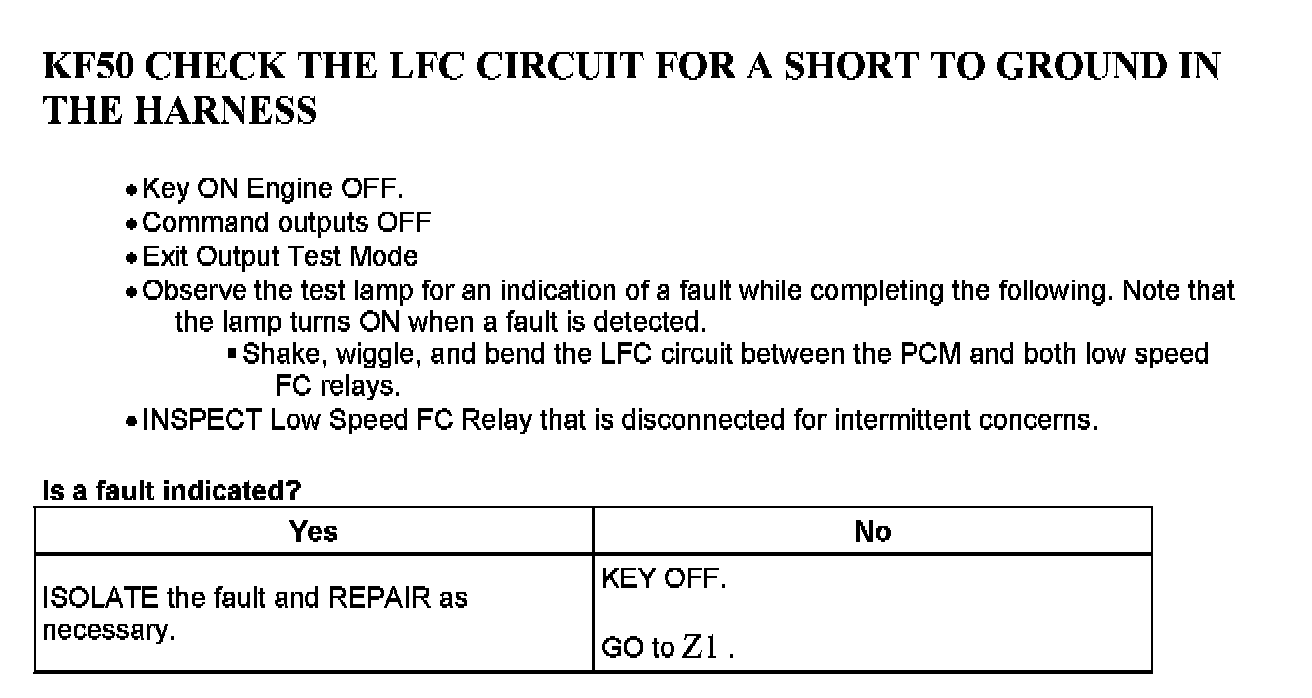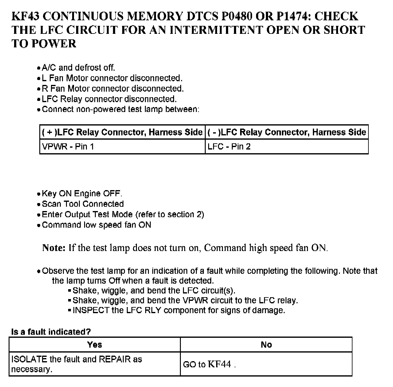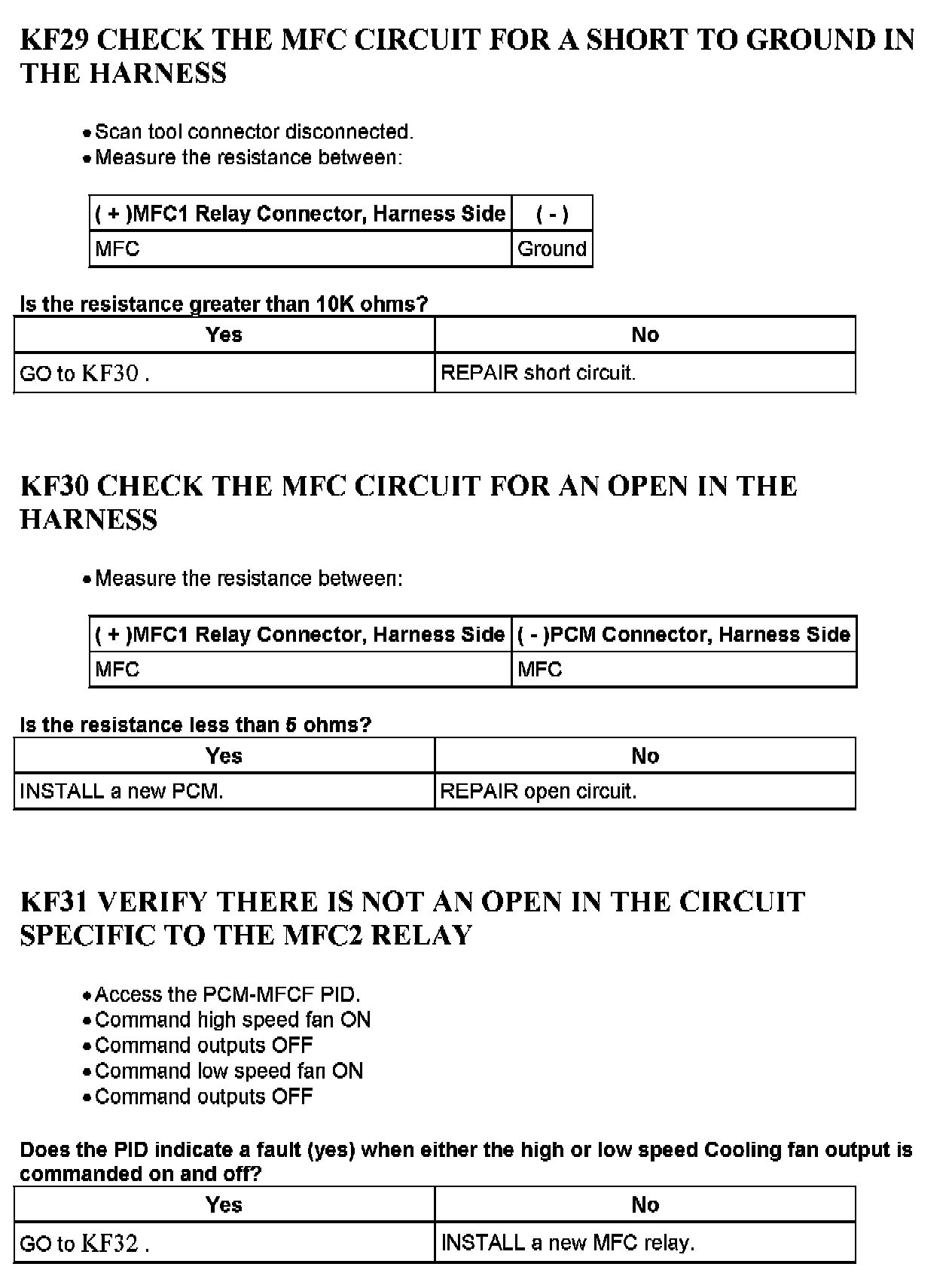 PINPOINT TEST KF: FAN CONTROL RELAYS