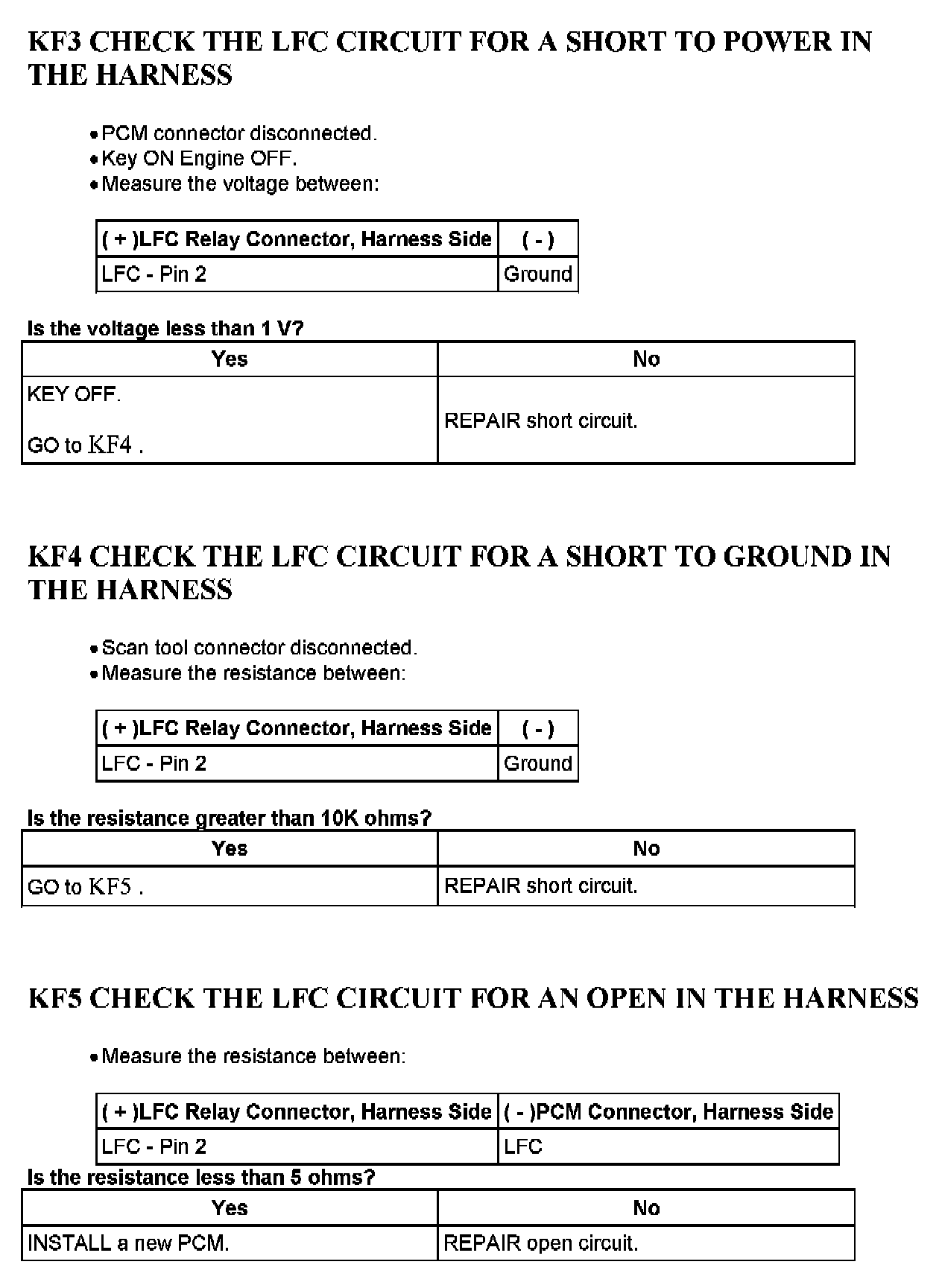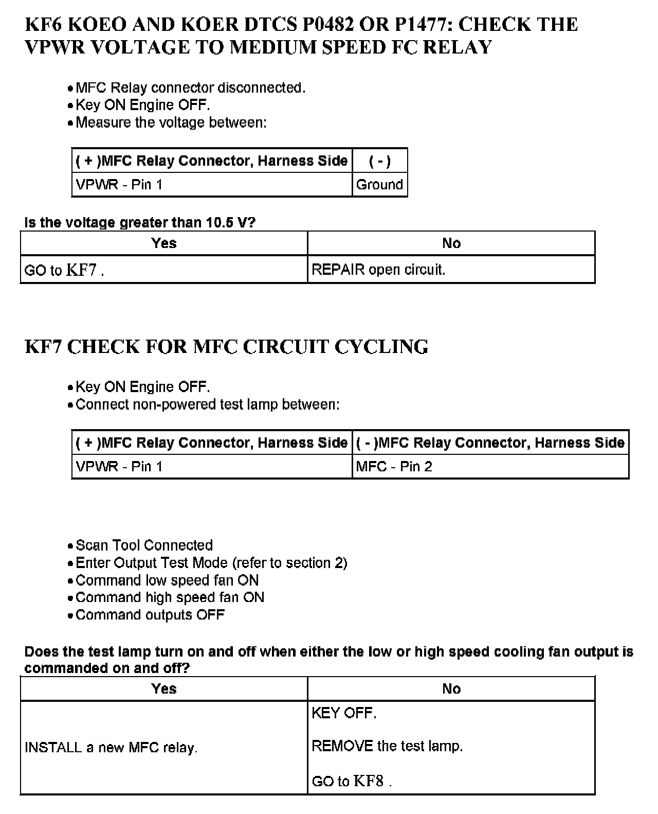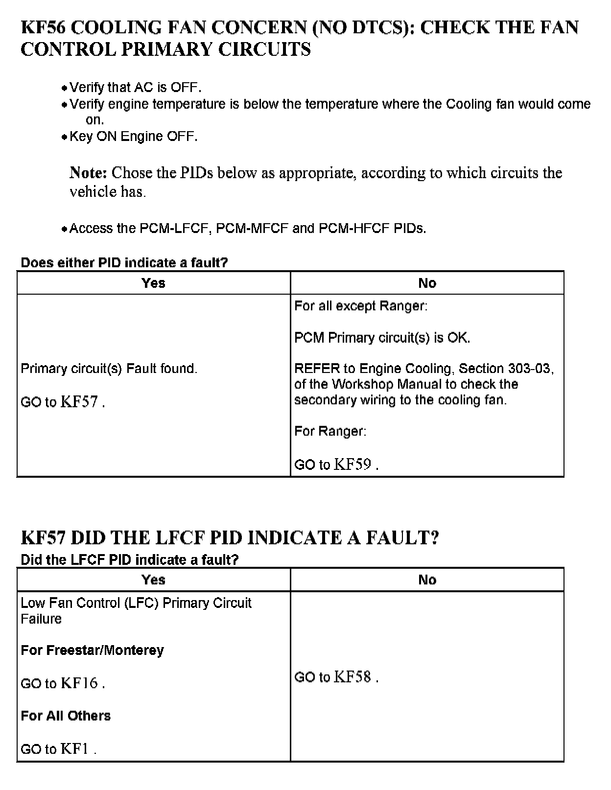 Home >> Ford >> 2004 >> Excursion 4WD V10-6.8L VIN S >> Repair and Diagnosis >> Powertrain Management >> Computers and Control Systems >> Testing and Inspection >> Pinpoint Tests >> Tests KF: Fan Control Relays