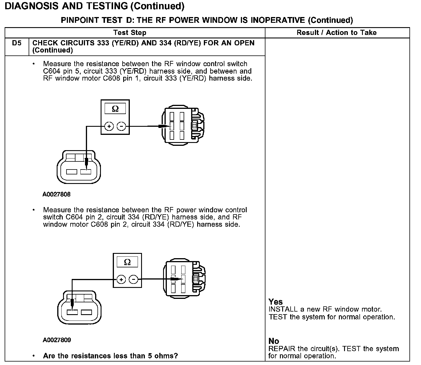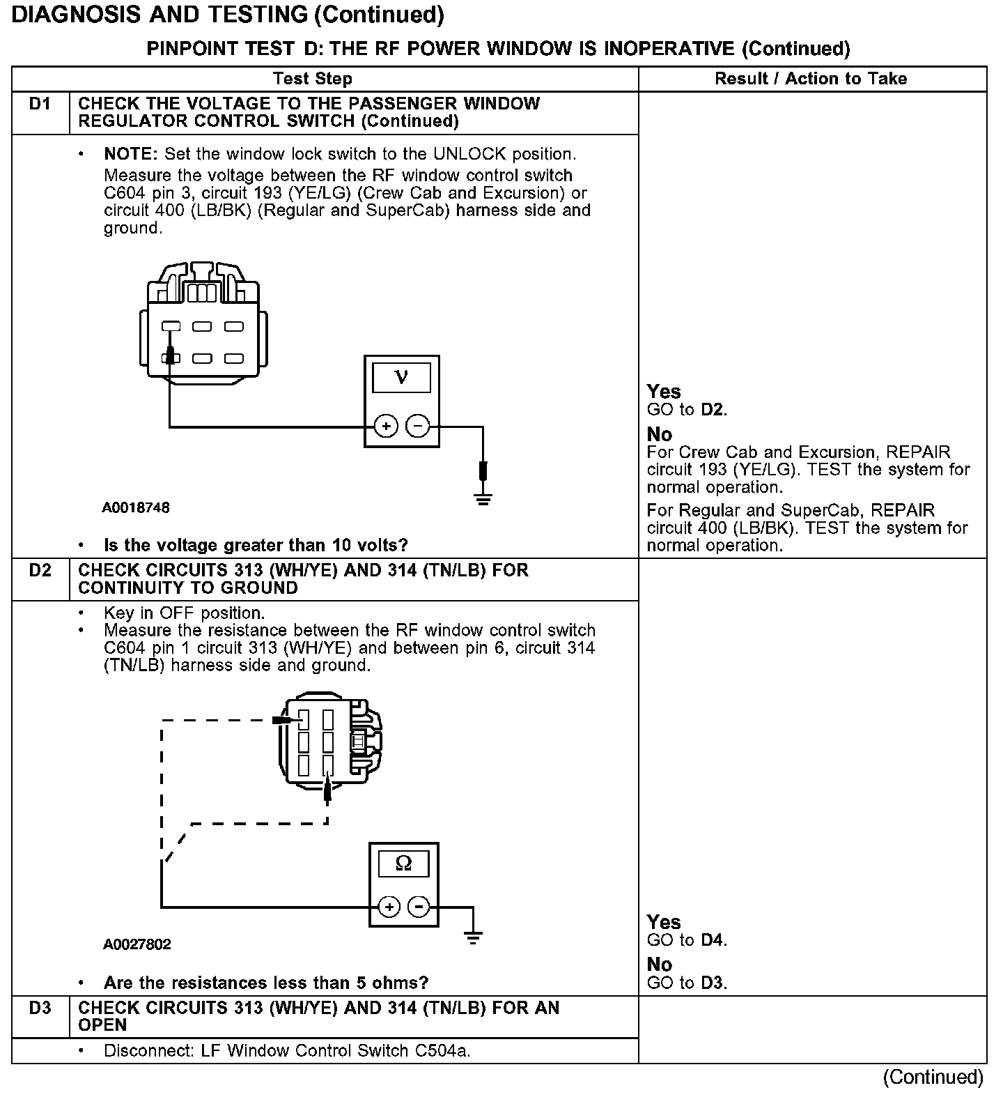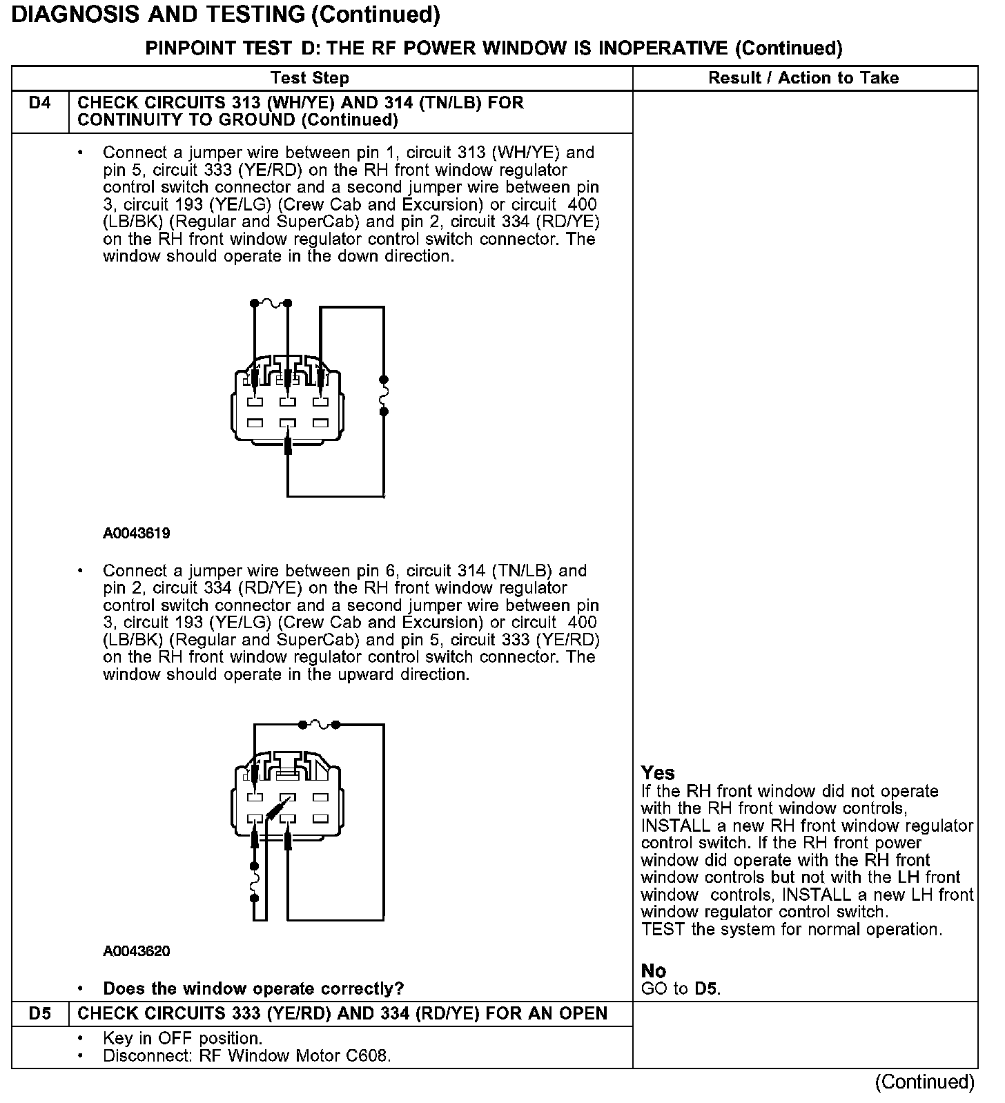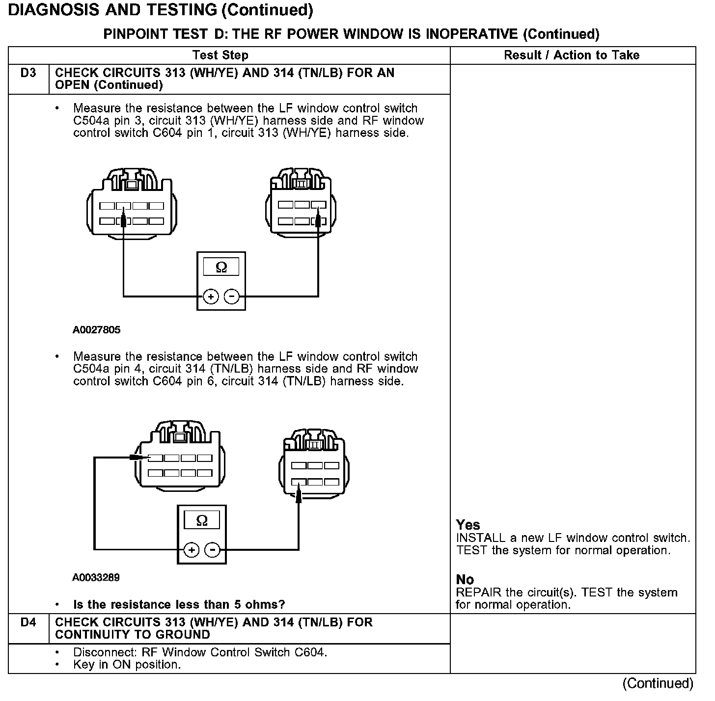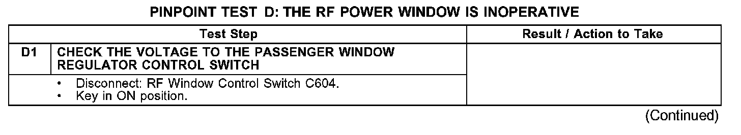 PINPOINT TEST D: THE RF POWER WINDOW IS INOPERATIVE