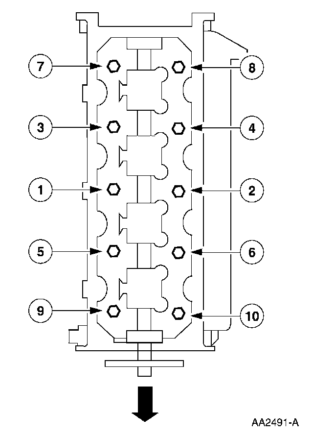 Tighten the LH bolts in the sequence shown.