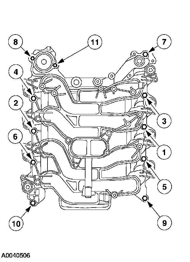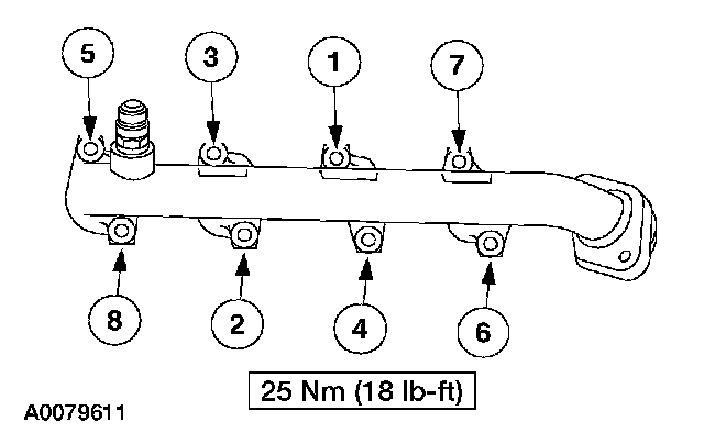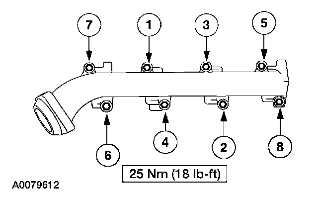 Tighten the exhaust manifold nuts in the sequence shown.