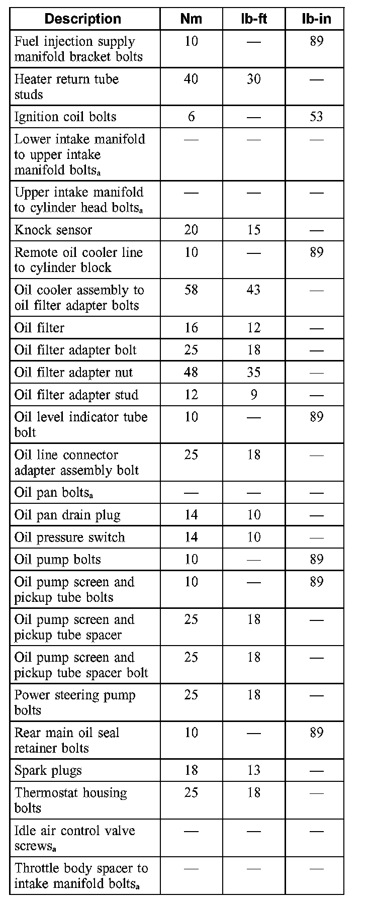 Torque Specifications