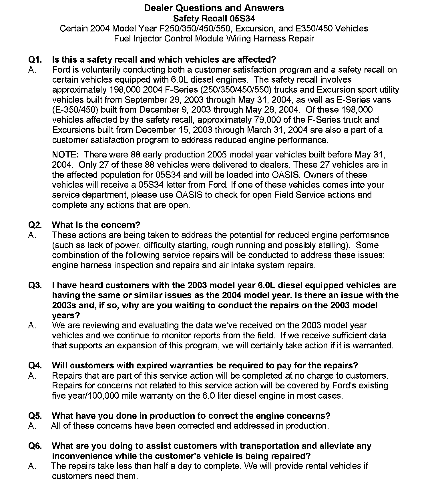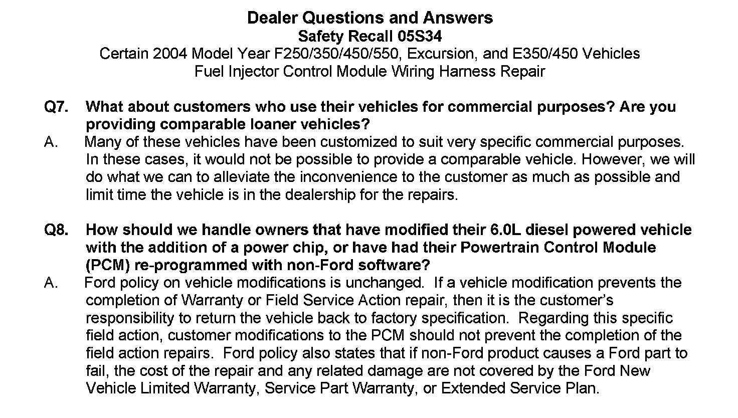 Attachment VI - Dealer Questions and Answers