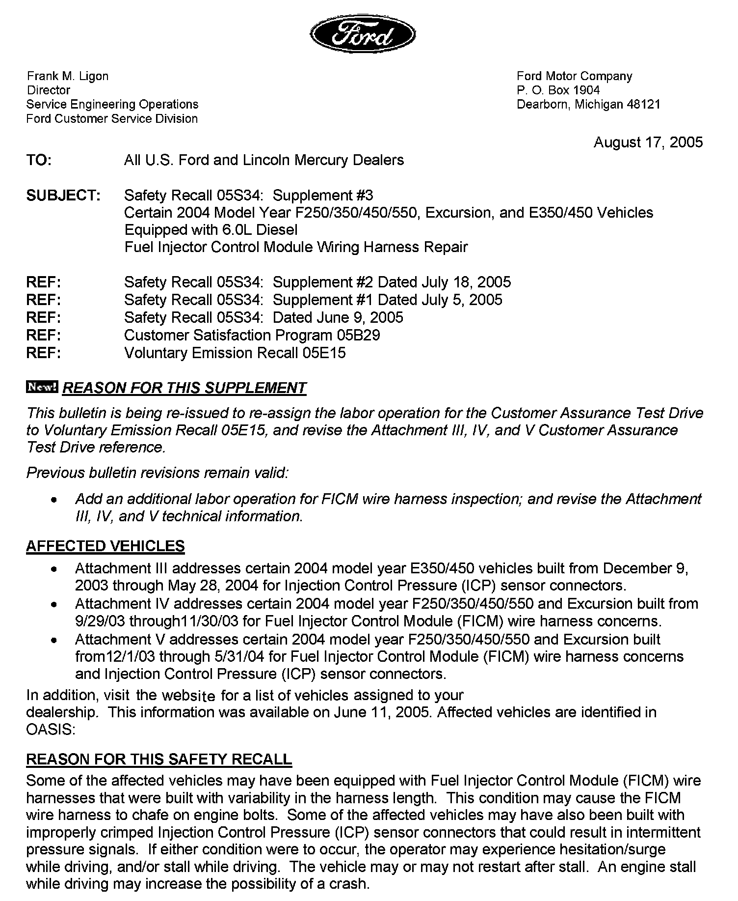 Recall - Injector Control Module Wiring/ICP Sensor
