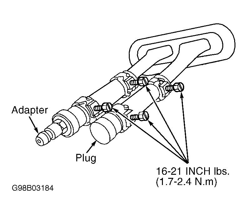 - Install Plug (BT-7422-B) on one hose end and Adapter (BT-7422-A) on other hose end. See Figure. Secure hoses, plug and adapter to hoses with hose clamps. Attach pump and gauge assembly from a radiator/heater core pressure tester to adapter fitting on heater hose. Close tester bleed valve and apply 35 psi (2.5 kg/cm2 ) air pressure to heater core.