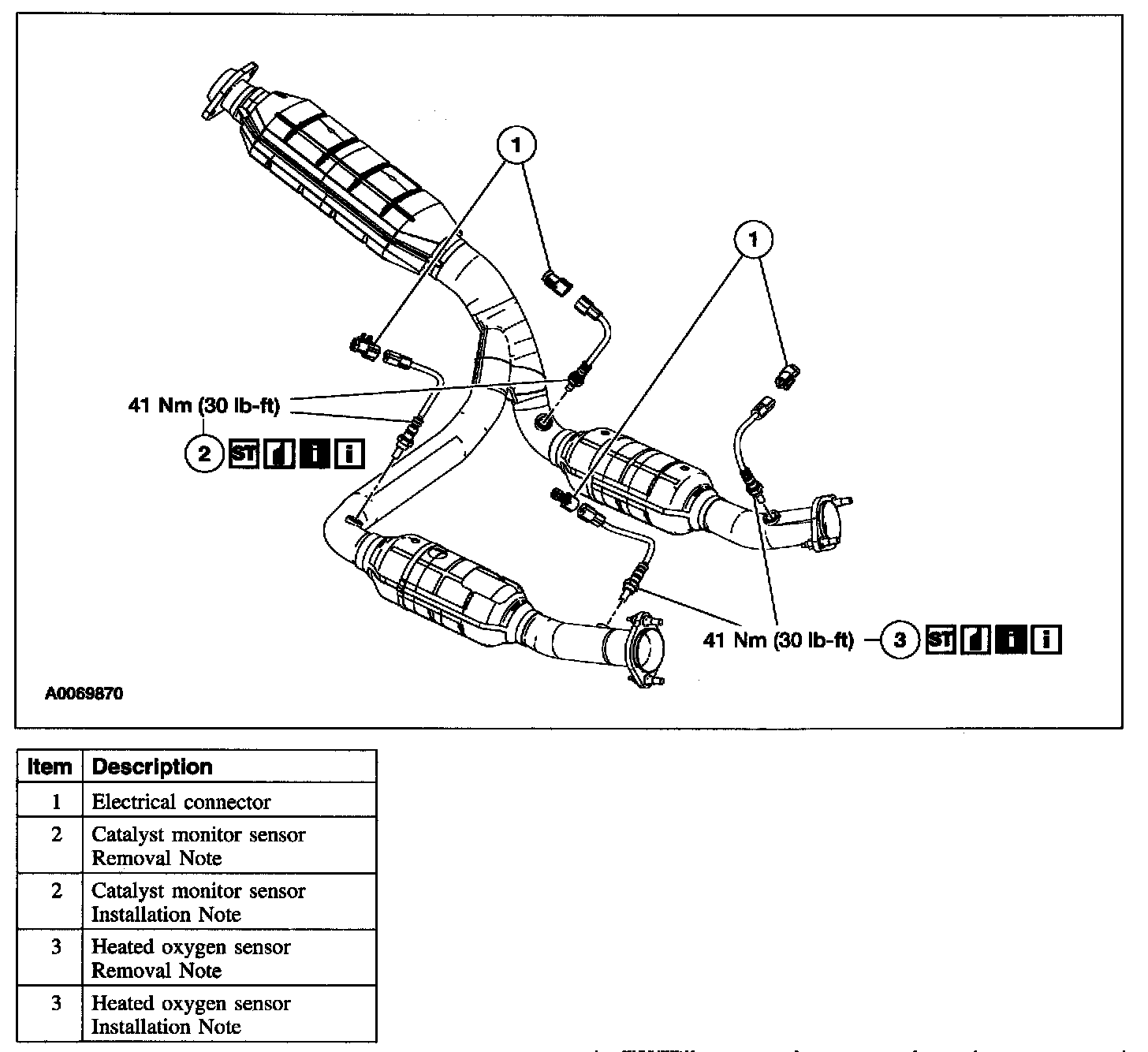 1. NOTE: If necessary, lubricate the catalyst monitor sensors with penetrating and lock lubricant to assist in removal.