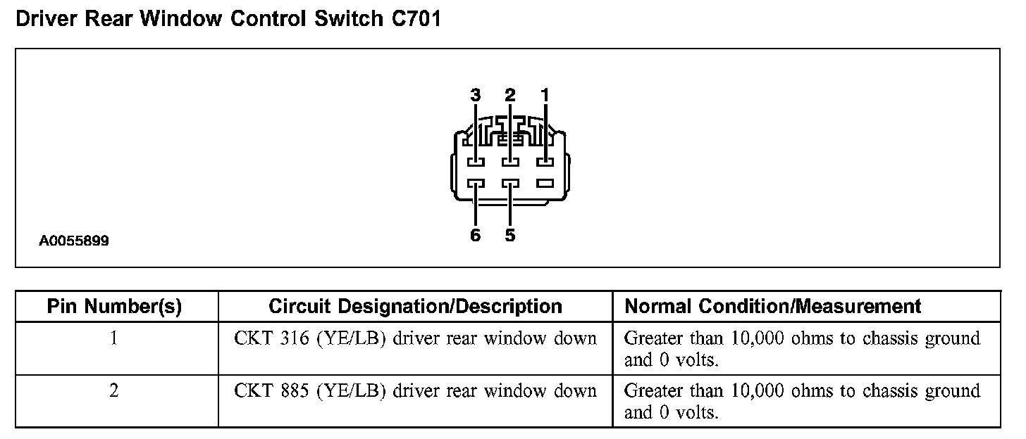 Driver Rear Window Control Switch C701, Part 2:
