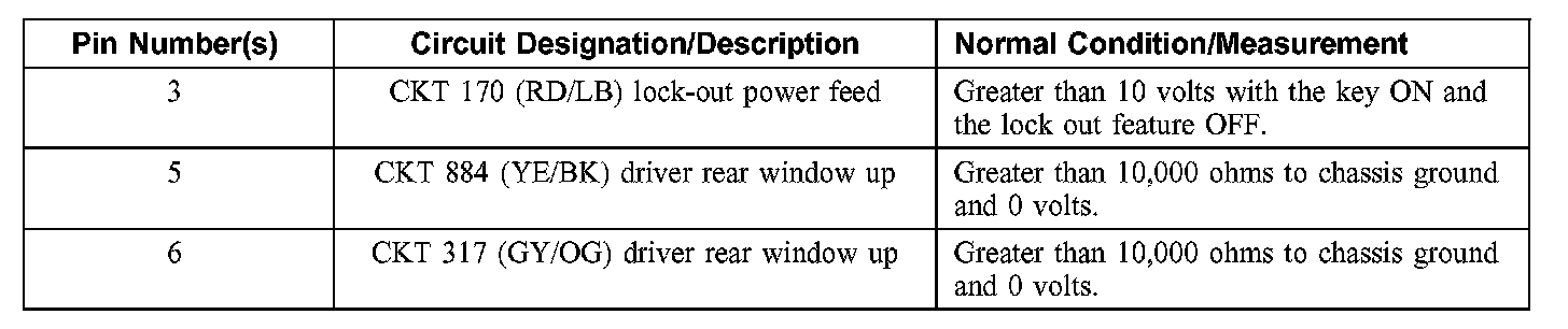 Driver Rear Window Control Switch C701