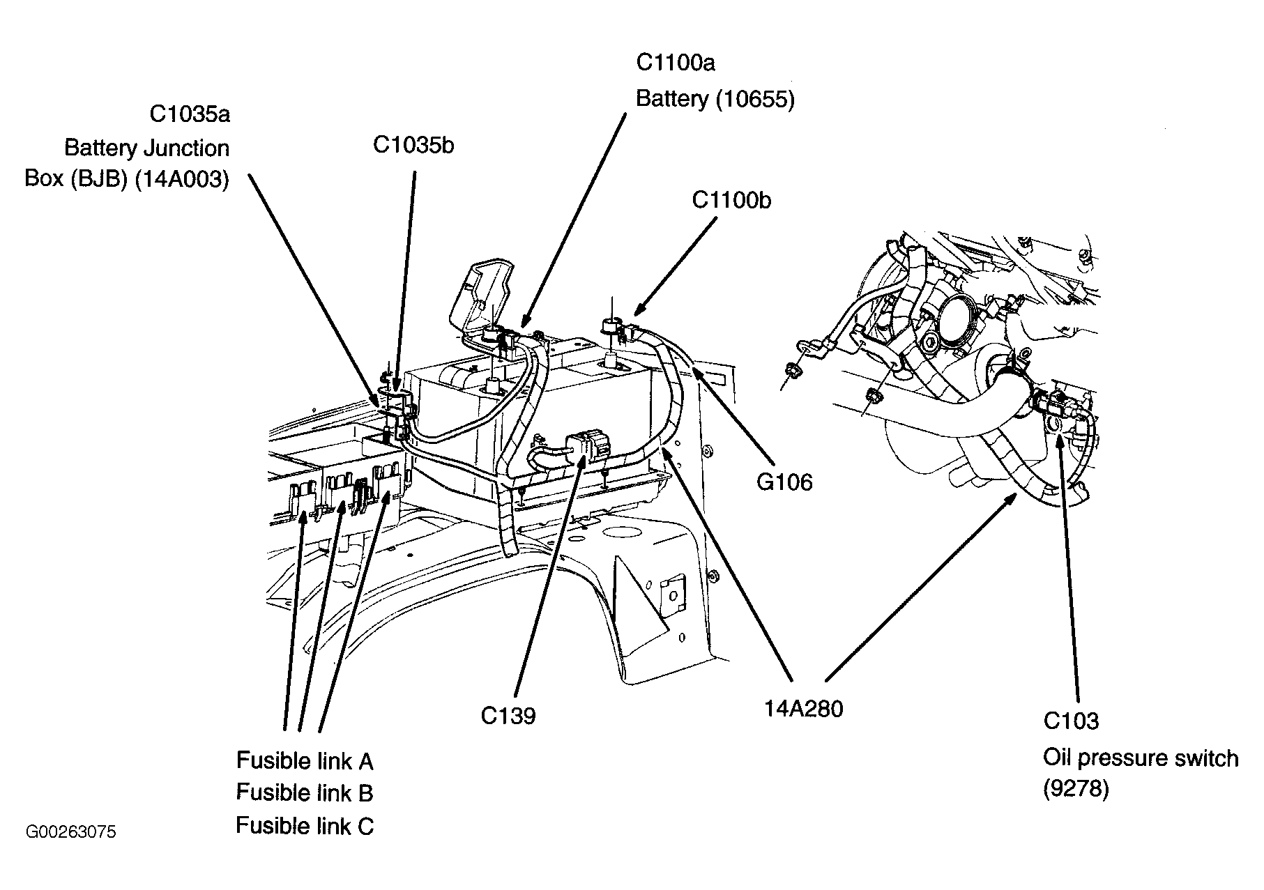 Fusible Link C On left side of engine compartment. See Figure.