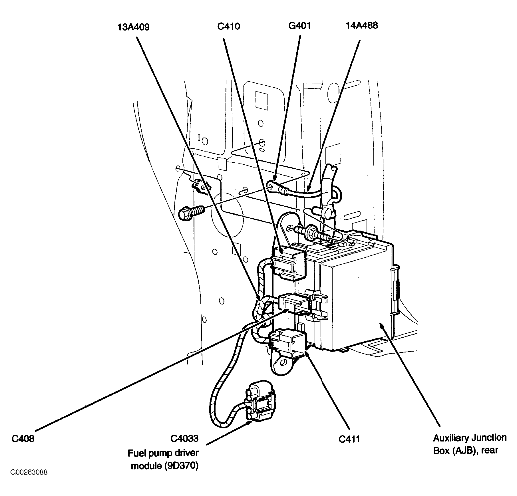 Auxiliary Junction Box (AJB), Rear At right "D" pillar. See Figure.