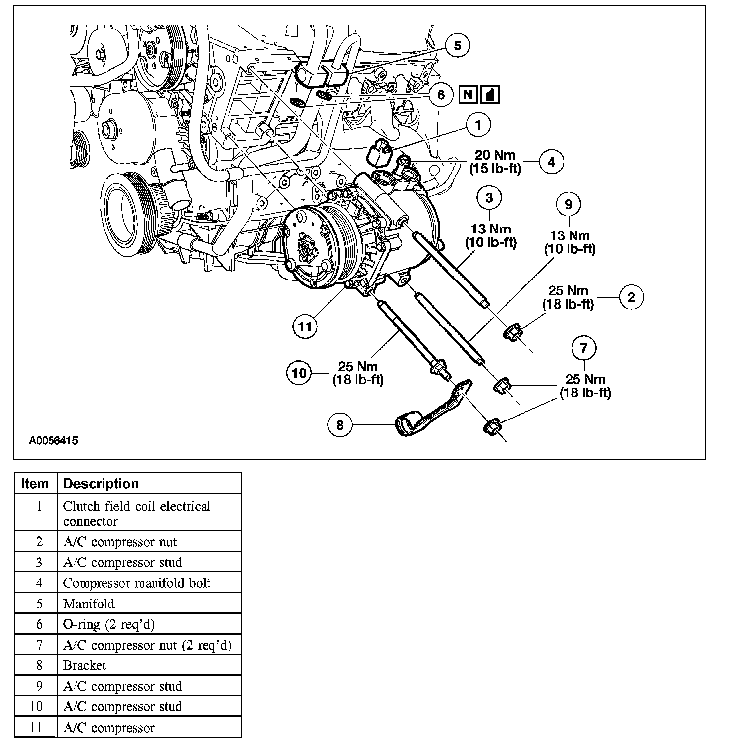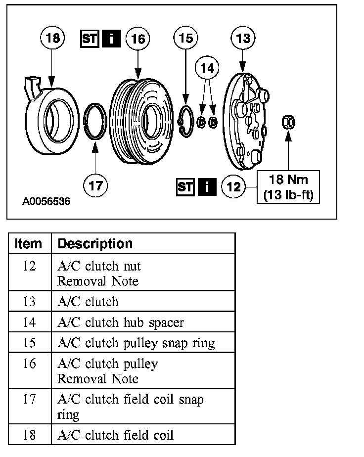Item 12: A/C Clutch Nut Removal Note